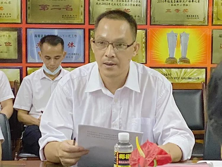 座谈会上,临高县实验小学符政敏校长就学校文化建设、价值追求、现状分析、学校目标定位等方面进行汇报,同时提出了学校发展中遇到的问题。