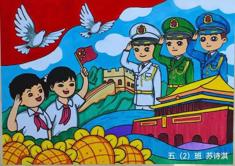 五年级绘画主题:7月1日建党节、8月1日建军节,请同学们了解这两个节日,以“爱党”或“军魂”为主题,完成一幅绘画作品。