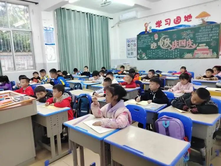 由于下雨,室外课后服务改为室内进行。8个班老师们都积极组织学生安静上课,有写字的,有看动画片的,还有的看国庆阅兵仪式等,课堂纪律较好。老师们下课后都整队到教室外等家长接孩子。