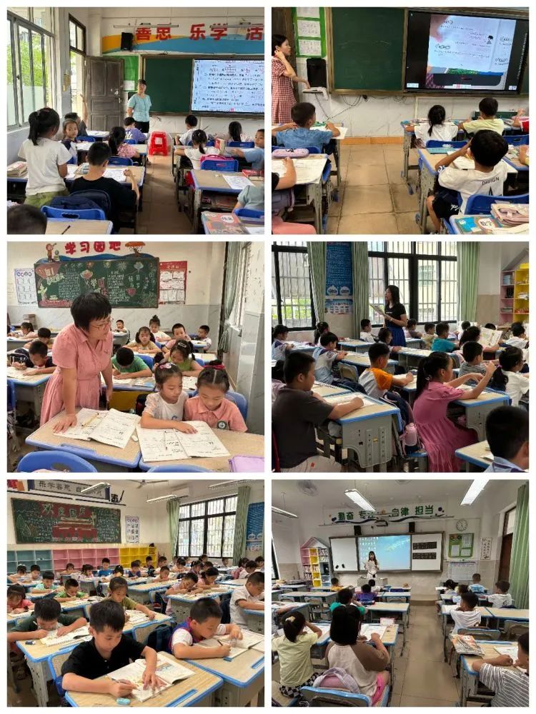 三1班,三2班,三3班,三5个班在进行周周清密卷测试,三4班三6班语文老师在集体讲语文习题,三7班英语老师在讲英语习题。