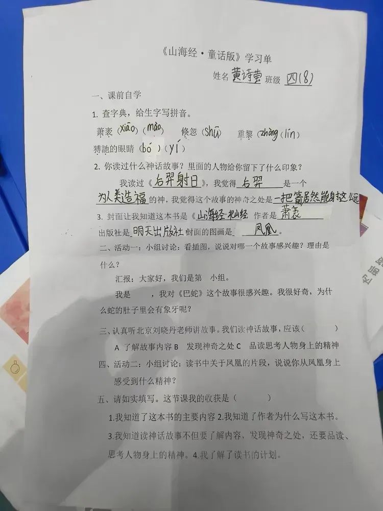 2.四年级整本书阅读指导课刘文君老师,班级四8班,指导书目《山海经·童话版》。