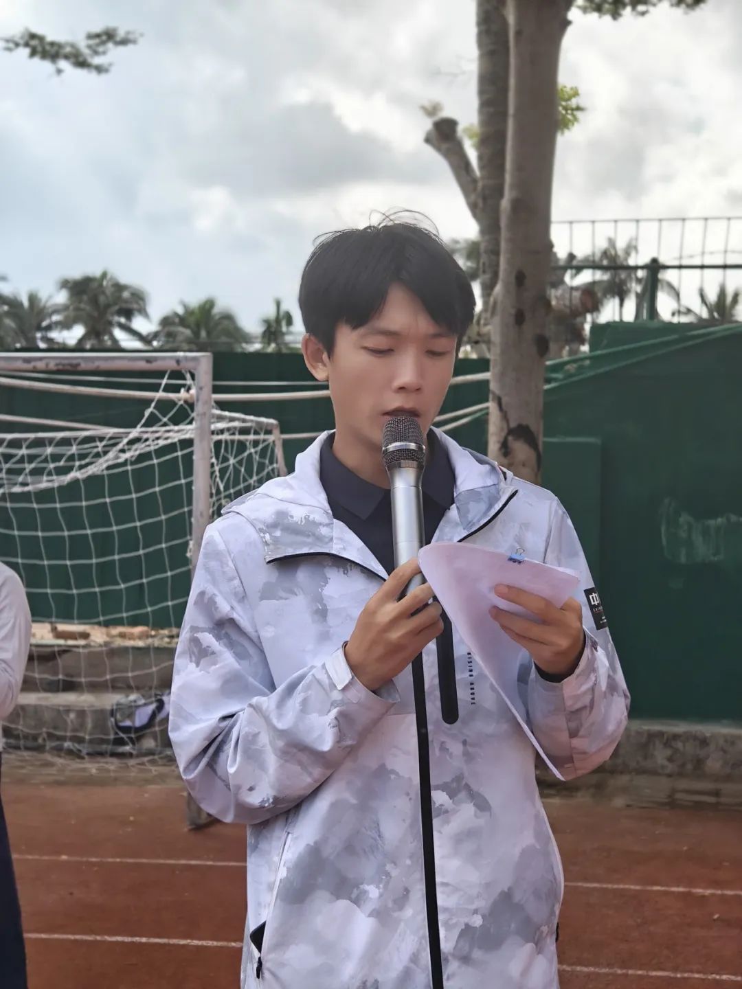 比赛伊始,随着国歌的奏响,全体师生肃立,目光坚定,共同唱响了对祖国的热爱和对体育精神的尊重。
