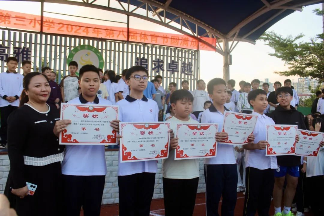 随着颁奖仪式的结束,文昌市第三小学第八届体育节田径比赛决赛圆满落下帷幕。这次活动不仅锻炼了学生们的身体素质,增强了班级的凝聚力,还丰富了学生们的校园文化生活。