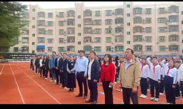 一袭国旗艳,满腔爱国情。和着激昂的旋律,鲜艳的五星红旗缓冉冉升起,全体师生庄严肃穆,朝着国旗的方向行注目礼,少先队员行队礼,带着坚定信念,迎接新挑战,拥抱新辉煌。