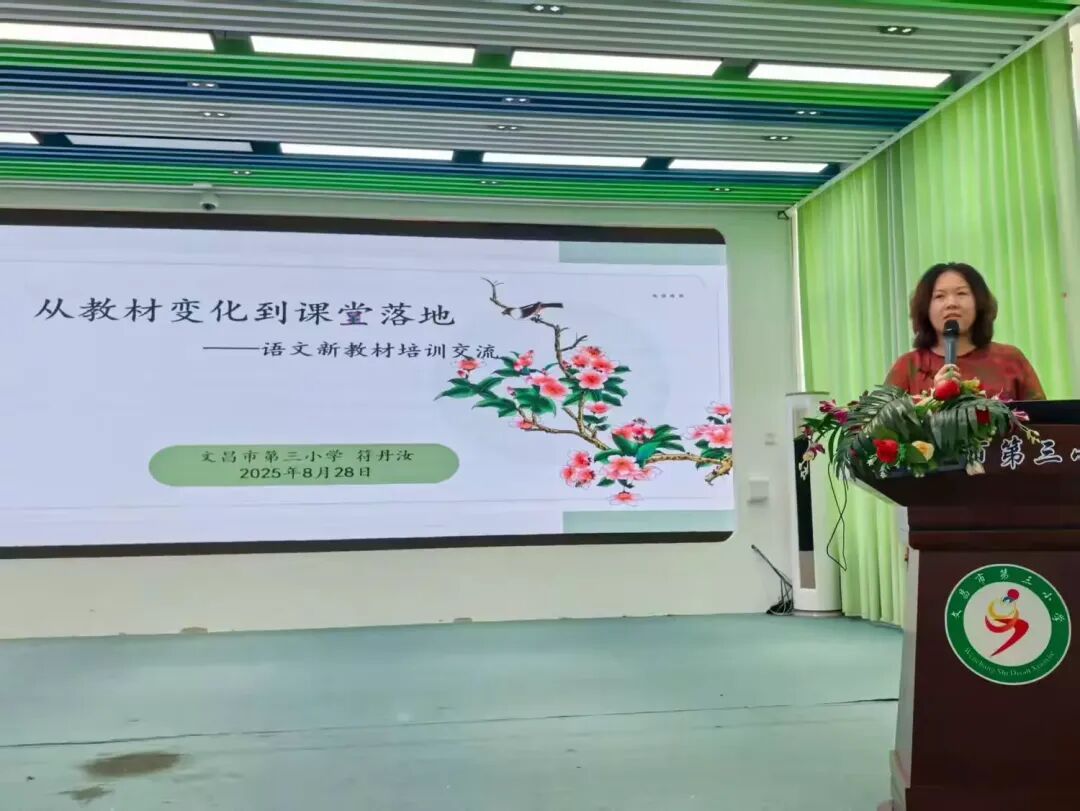 8月28日上午,文昌市第三小学组织开展小学语文新教材专题培训活动。全体语文教师齐聚一堂,共研教材,共话成长。