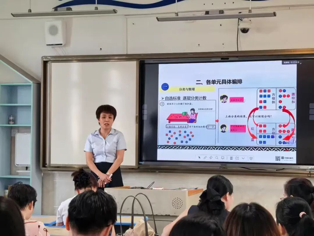 讲座过程中,云曼芬组长围绕教材编写理念与教学方法展开解读,结合具体课例分析了二三年级教材在内容结构、核心素养培养上的调整,探索高效教学方法。讲座还设置互动环节,教师们就“如何设计生活化教学情境”“分层作业的实施策略”等问题展开讨论,云曼芬老师针对问题提供了可操作的建议,现场交流氛围活跃。