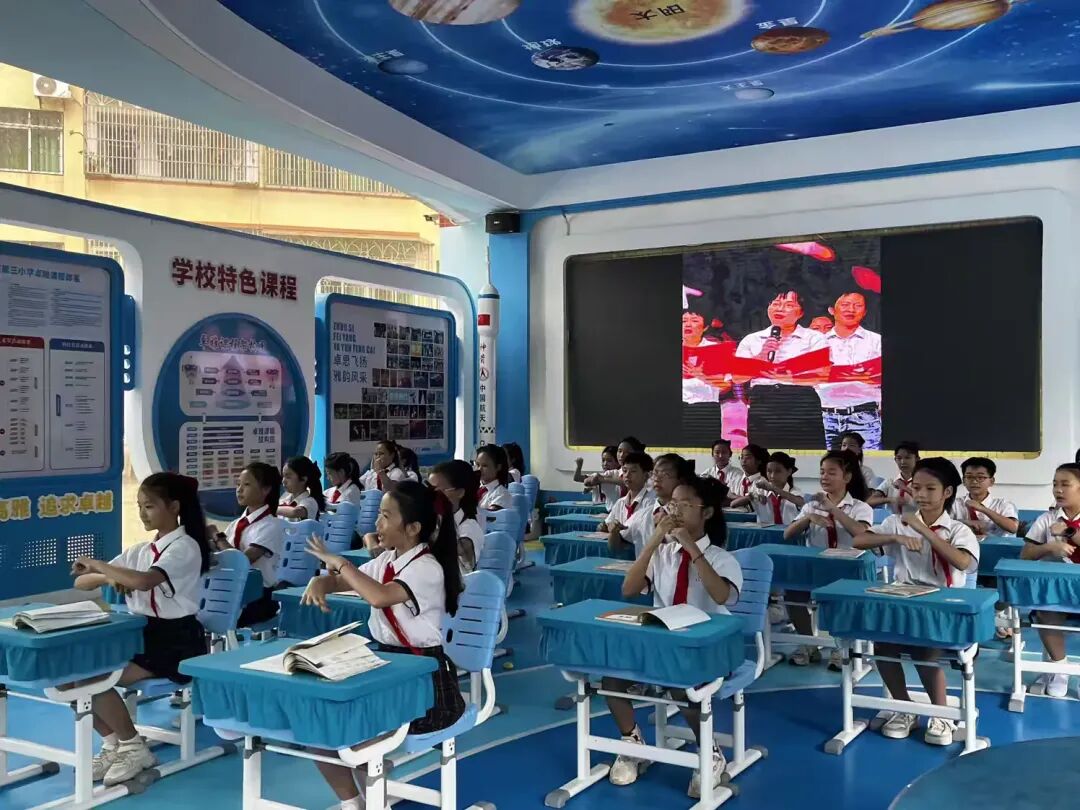 跟岗教师参与了文昌市第三小学升国旗仪式,观摩了学生班级汇演、颁奖仪式及校长讲话环节。学生们的表演展现了积极向上的精神面貌,颁奖环节表彰了优秀学生,王平校长在讲话中对跟岗教师表示欢迎,并介绍了文昌市第三小学“做适合学生的教育”的理念。