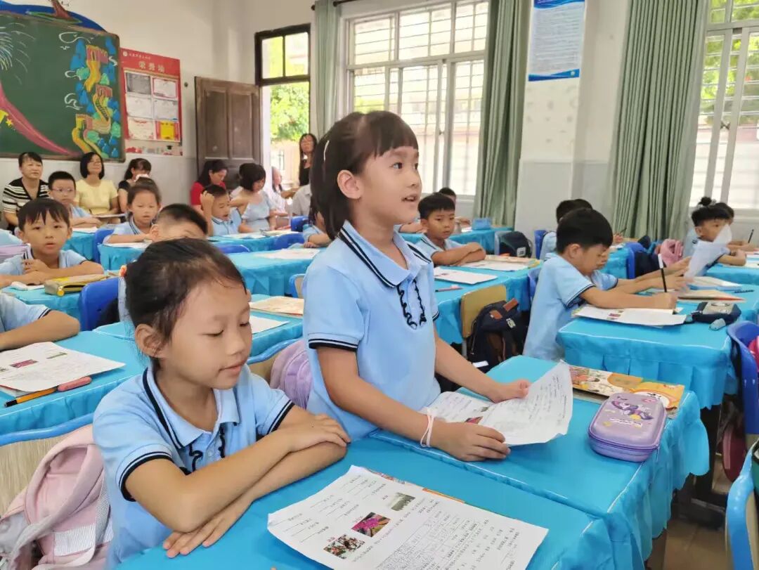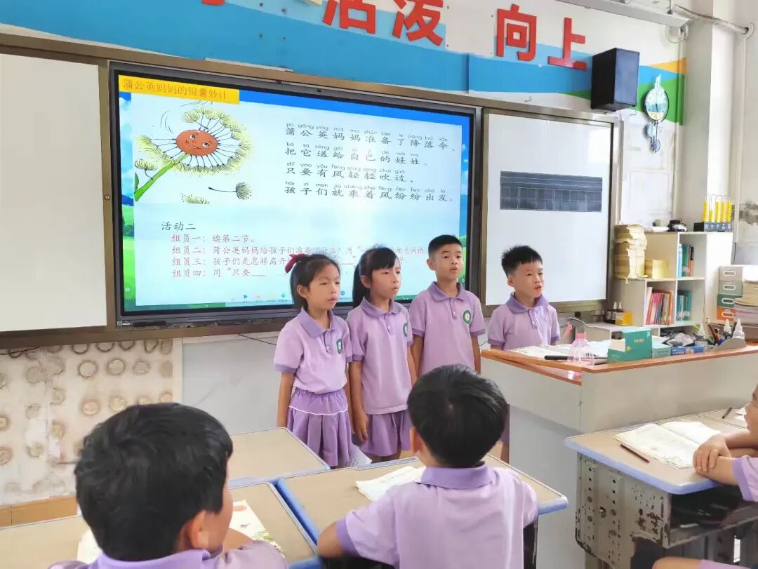 课堂上林老师安排了丰富的朗读活动,包括检查预习读文、小组读诗歌等,让学生充分朗读课文,落实了朗读要求。学生们坐姿端正,认真听讲,积极参与课堂活动,展现出良好的学习状态。