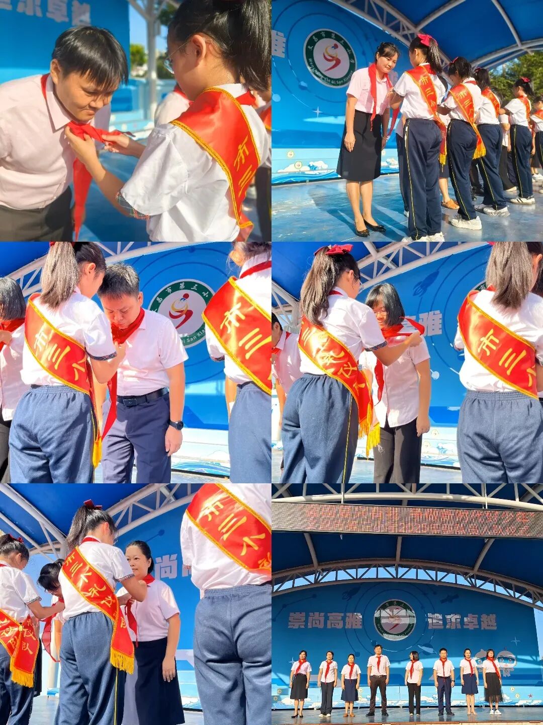 亲爱的少先队员们,入队仪式圆满落幕了。但这不是结束,而是你们红领巾事业的崭新开端。愿你们以队旗为向,以誓言为帆,在“崇尚高雅,追求卓越”的校训指引下,把入队的激动化作成长的动力,让红领巾在胸前永远鲜艳,让少年的担当在逐梦路上熠熠生辉!