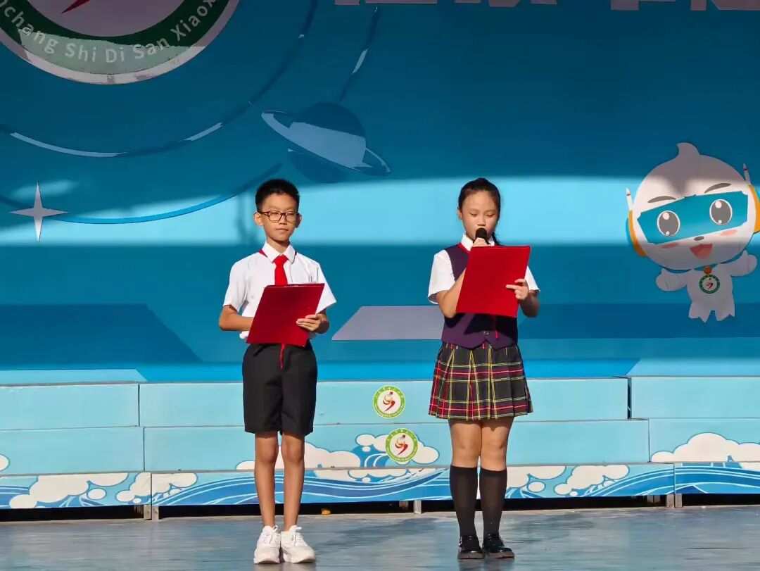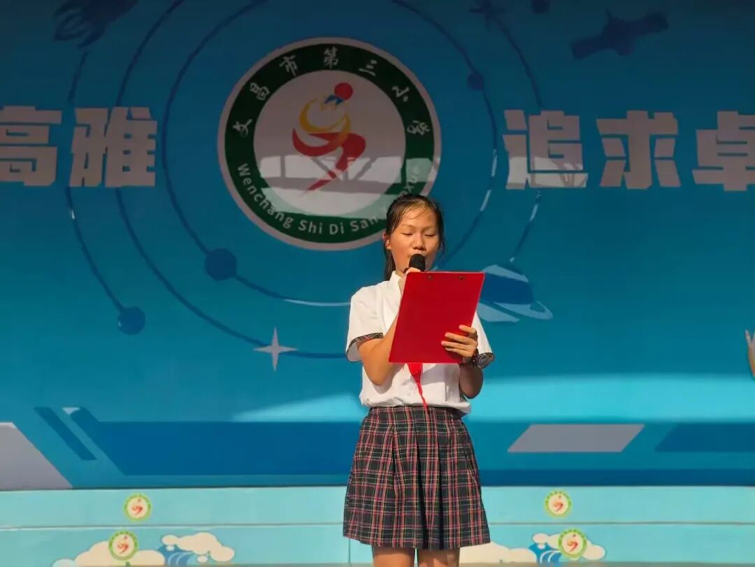 10月11日上午,我校以《中国少年先锋队章程》为遵循,落实立德树人根本任务,紧扣“牢记党的教导 争做强国少年”主线,举行文昌市第三小学2025年新队员入队仪式。