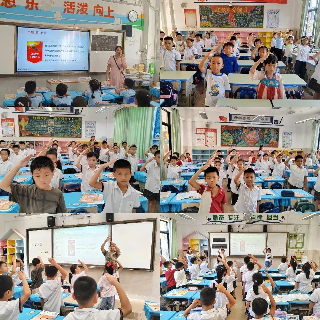 二年级各班学习少先队员六知六会一做内容,"六知"让我们知道从哪里来,"六会"教会我们怎样出发,"一做"提醒我们为何出发。愿每个预备队员,都能带着这份通关秘籍,在星星火炬的照耀下,率先成长为"强国少年"!