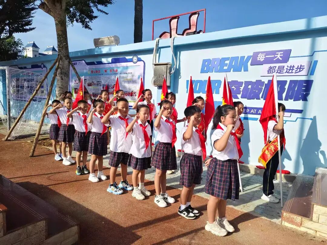 在对旗的见证下,陈晓欣副辅导员带领全体队员举拳呼号。她领说:“准备着,为共产主义事业而奋斗。”队员们齐声回应:“时刻准备着!”平实的话语里,是少年们对理想的赤诚,是他们以行动践行担当的坚定承诺,让红色信念在这一声声回应中扎根心底。