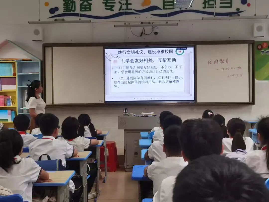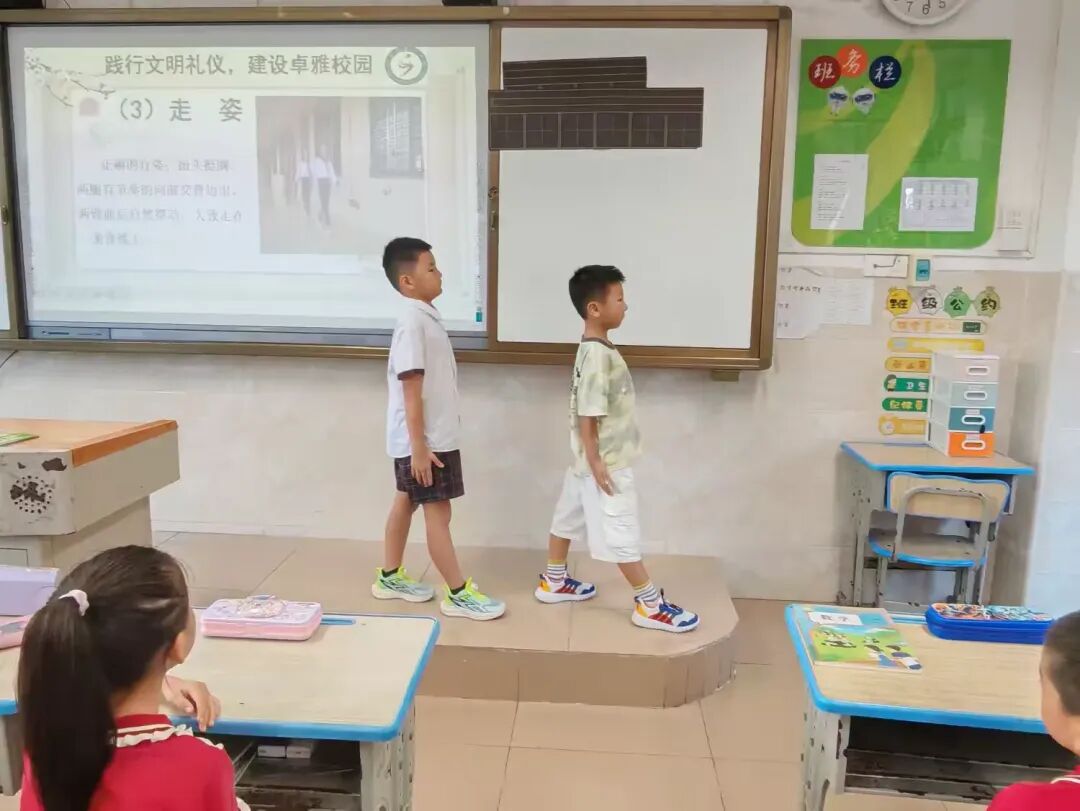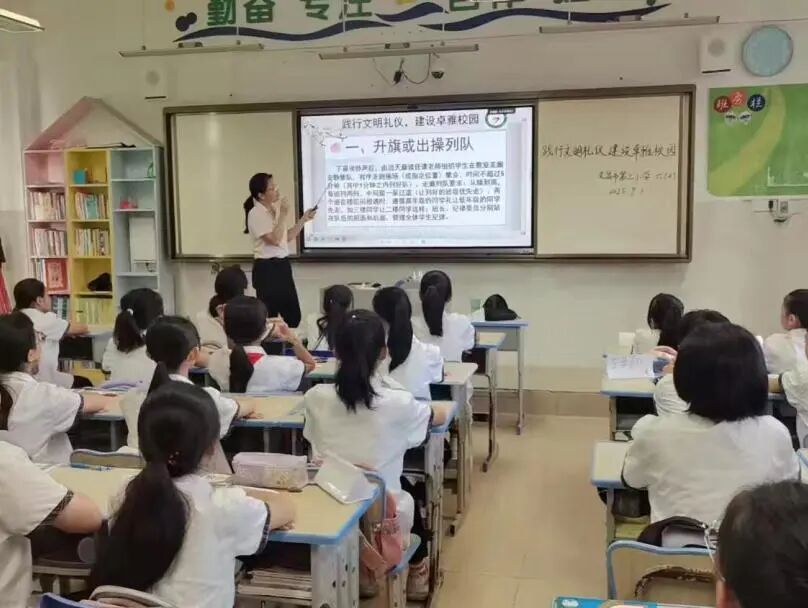 从课间的轻声有序、列队的整齐挺拔,到课堂的专注认真、礼仪的真诚得体;从“八荣八耻”的朗朗背诵,到国歌校歌的庄严传唱;从校园安全的牢记心间,到个人卫生的细致践行……每一个细节的打磨,每一次场景的模拟,每一回动作的纠正,都见证着孩子们的蜕变与成长。