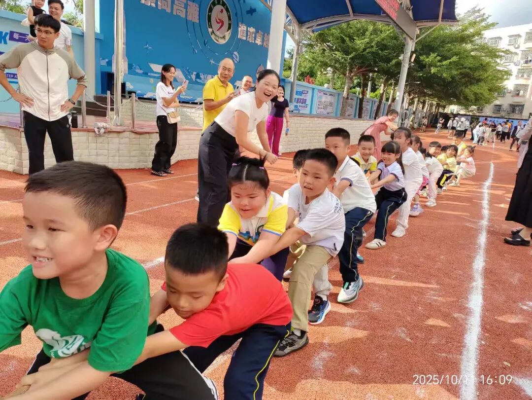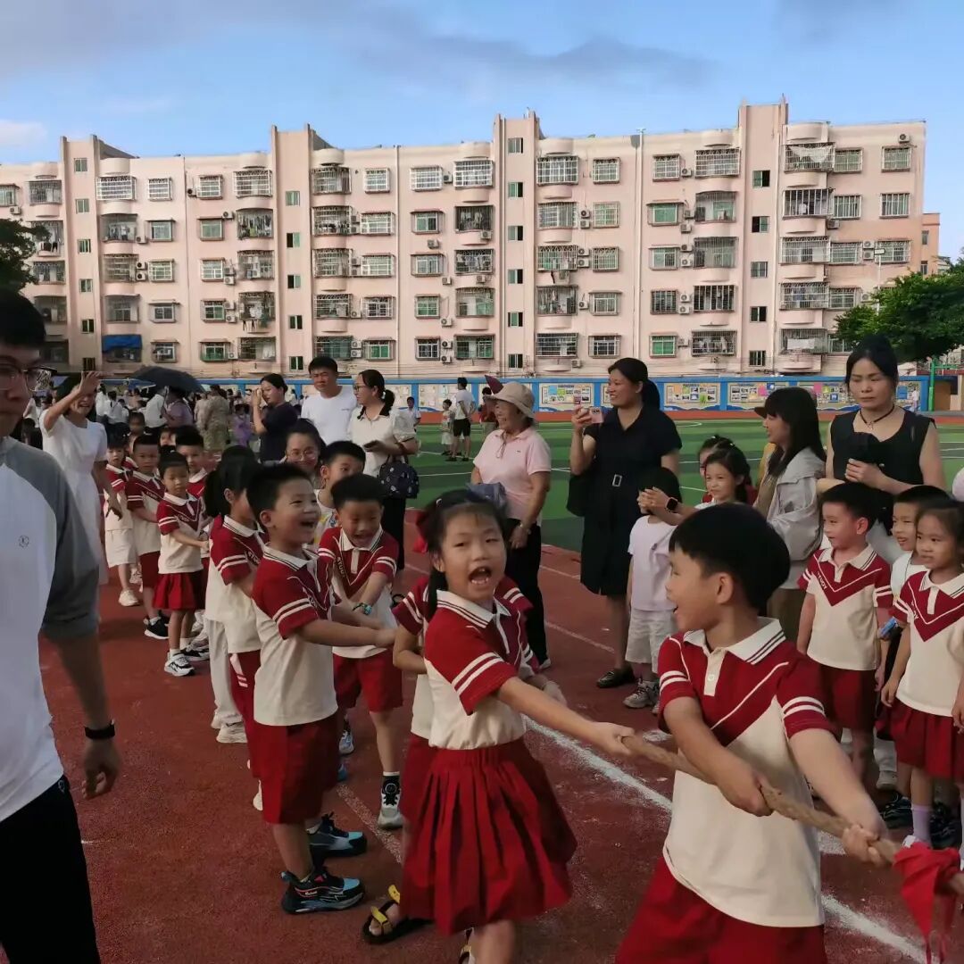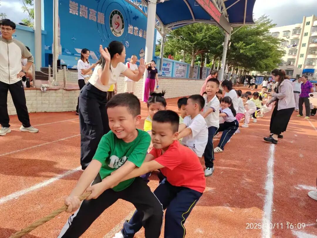 秋日操场热闹非凡,一年级拔河初赛在此展开。小选手们身着整齐校服,带着紧张又兴奋的表情为班级荣誉拼搏。老师和家长在场边加油,校园里充满欢声笑语与团结氛围。