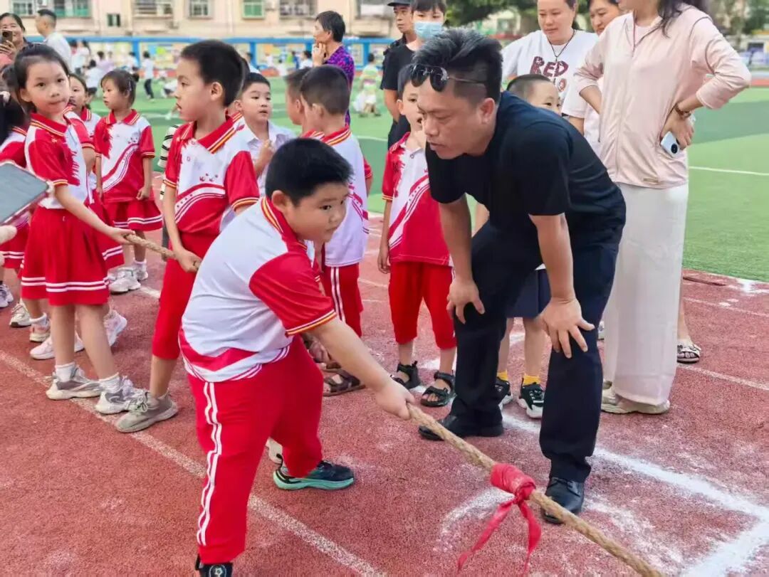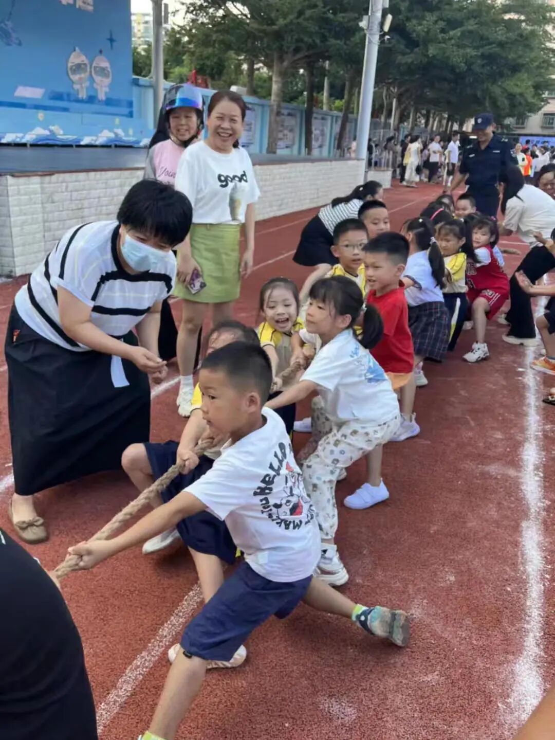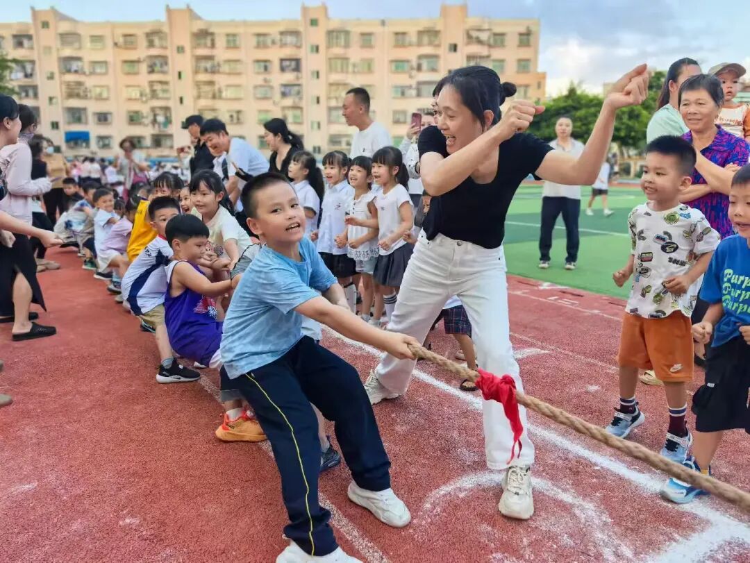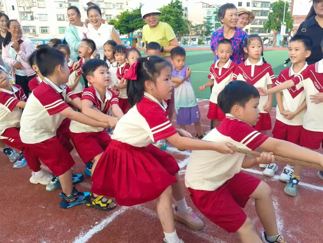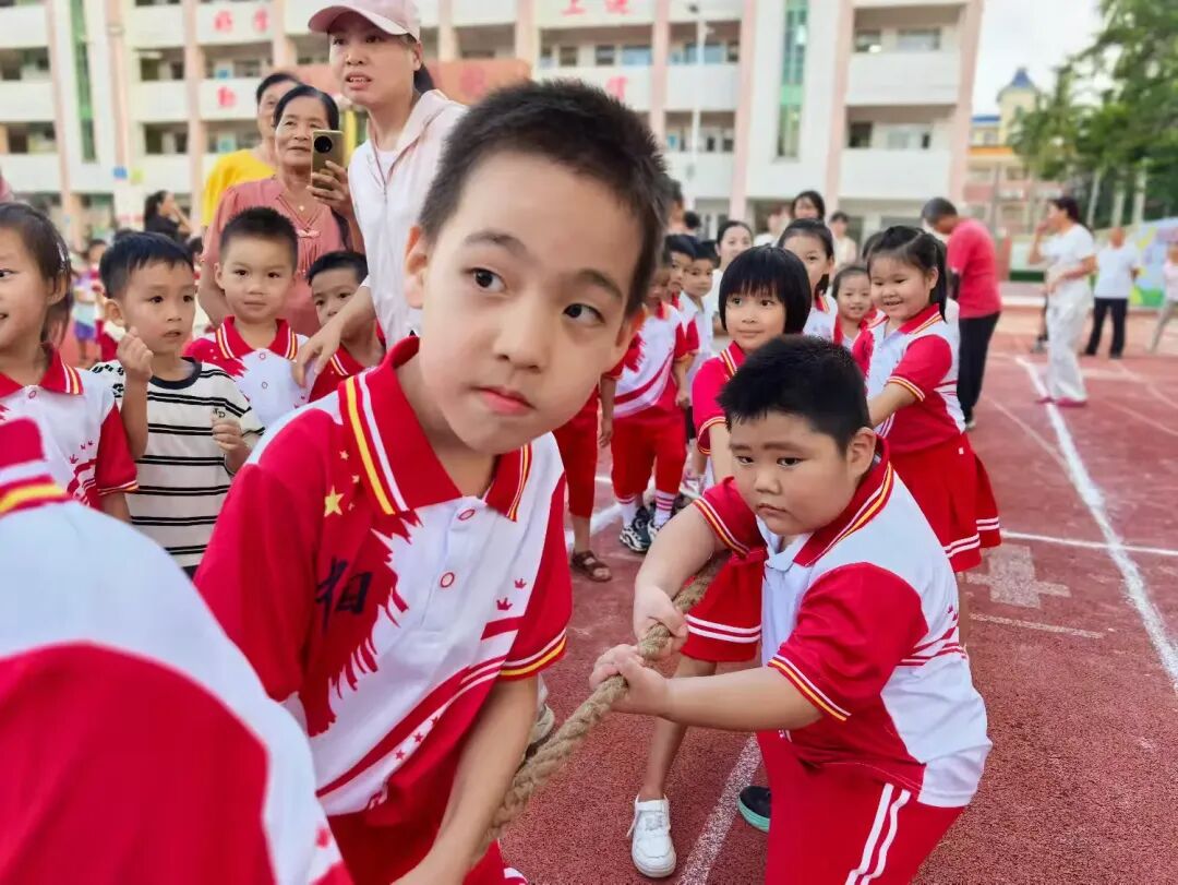 小选手们脚挨脚、身贴身形成坚固人墙,齐声喊着口号。绳子被拉得笔直,孩子们脸上洋溢着不服输的劲头,用小小身躯爆发出大能量。