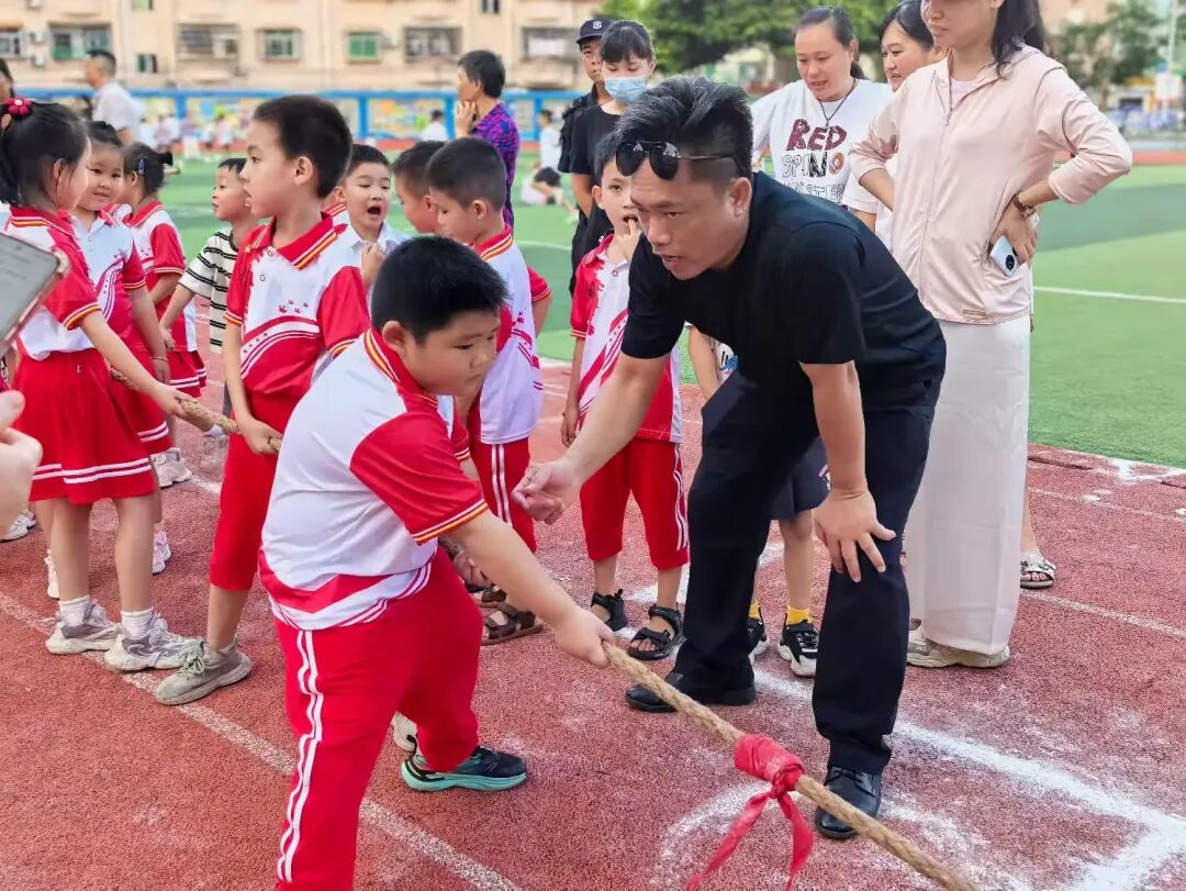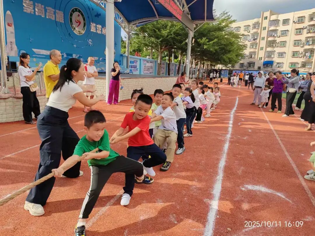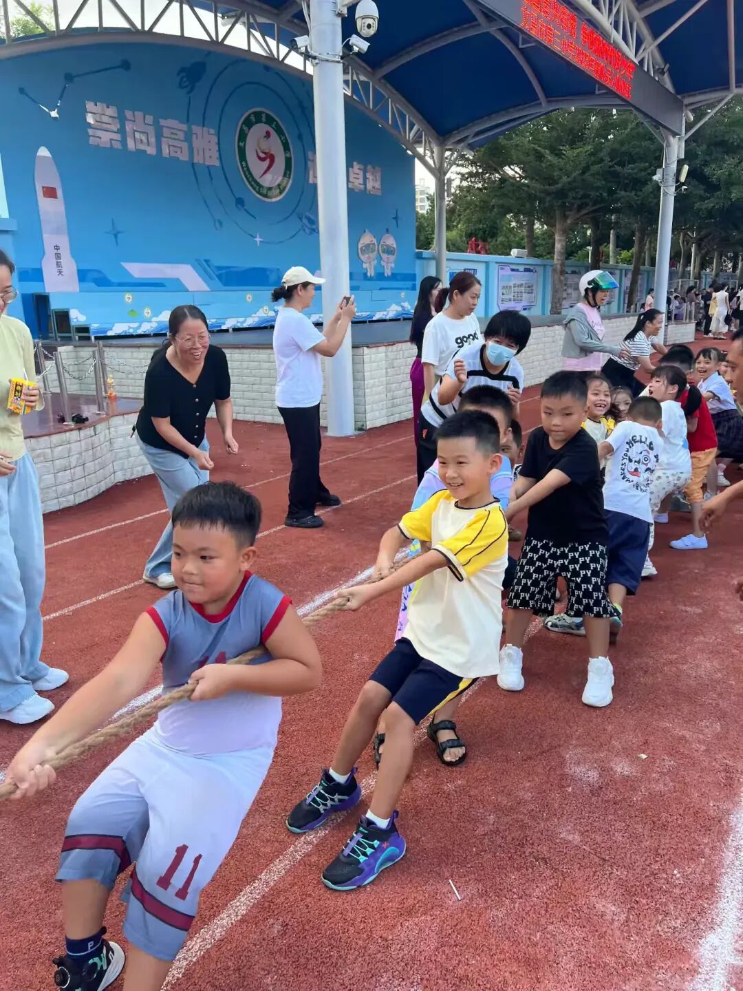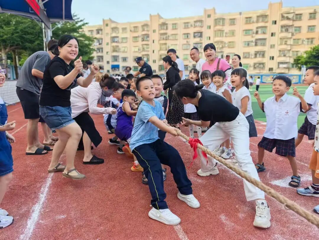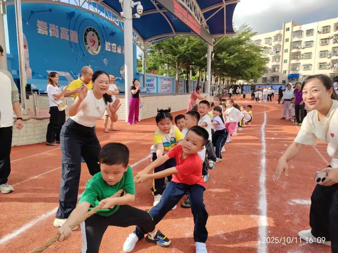 小选手们脚挨脚、身贴身形成坚固人墙,齐声喊着口号。绳子被拉得笔直,孩子们脸上洋溢着不服输的劲头,用小小身躯爆发出大能量。