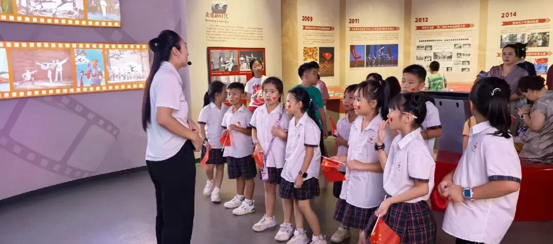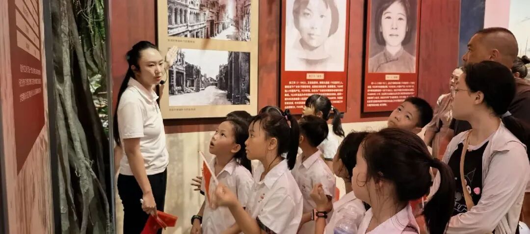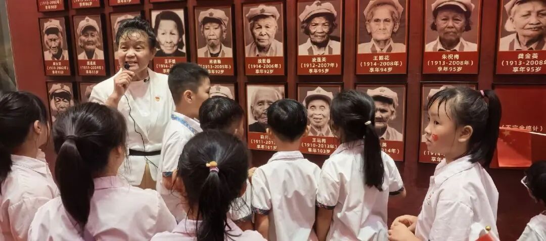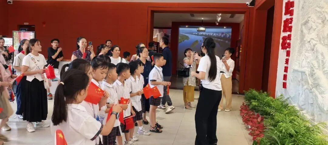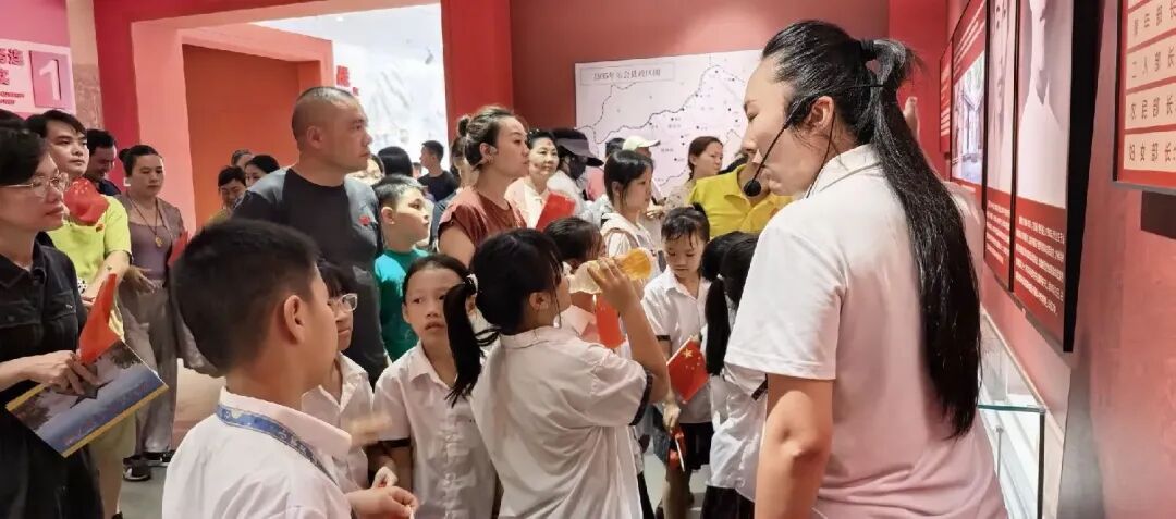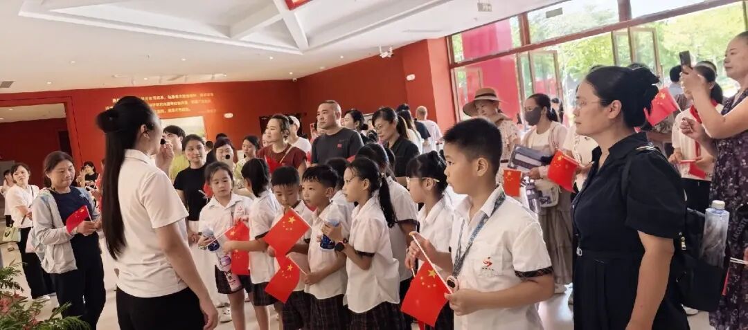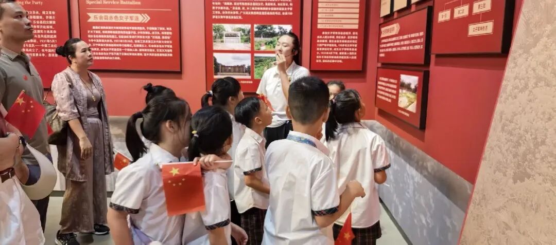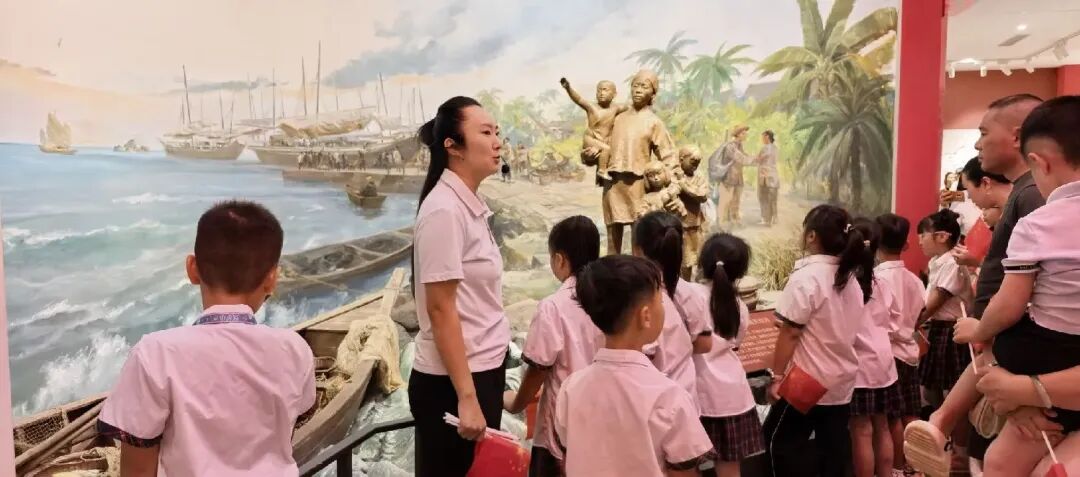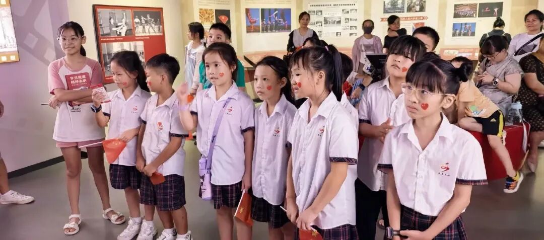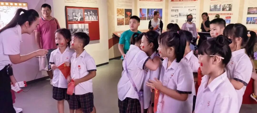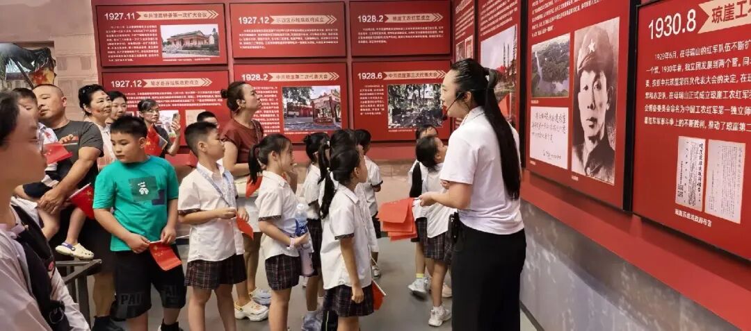 万泉河水清又清,我编斗笠送红军……”孩子们在讲解员的带领下演唱了《万泉河水清又清》,随即开始了今天的红色探索之旅。