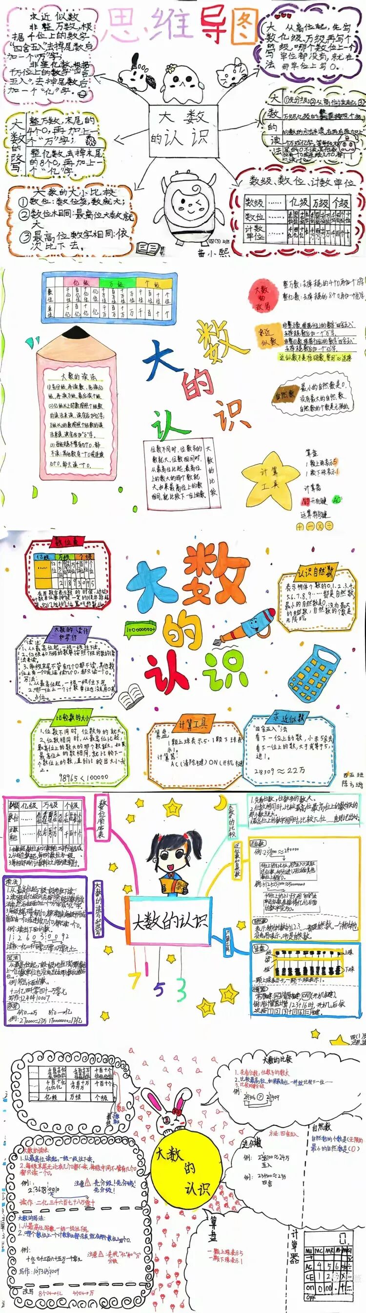 立足“大数的认识”与“公顷和平方千米”的学习难点,四年级作品凸显结构化思维。以“数位顺序表树状图”层层展开,让亿级数位清晰可触;用“足球场”“教室地面”等生活参照,将抽象面积单位具象化。换算关系跃然纸上,知识层级井然有序,思维之梯正稳步向上攀登。