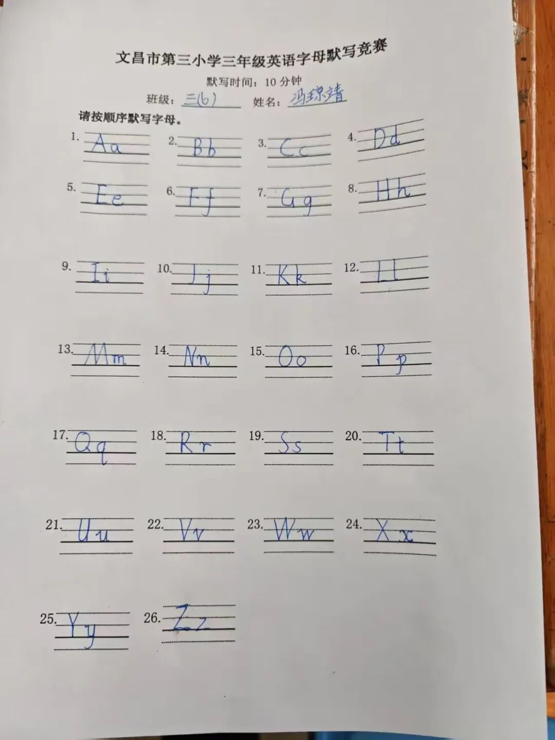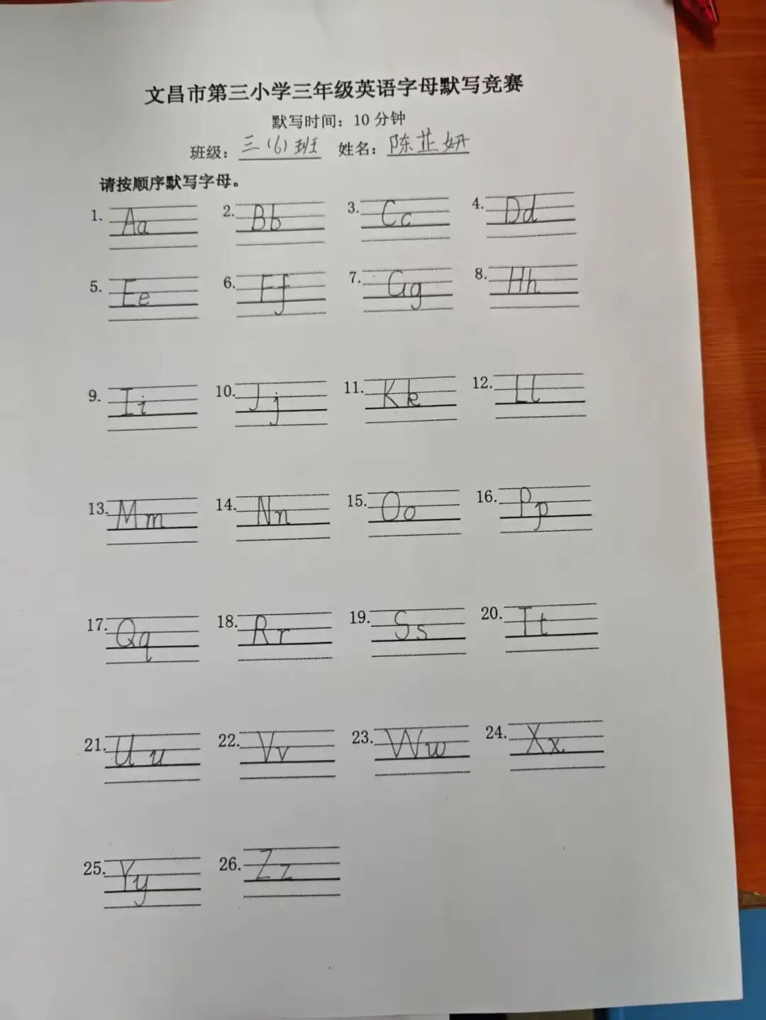 三年级英语字母书写比赛