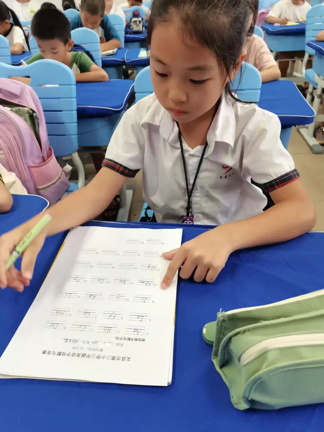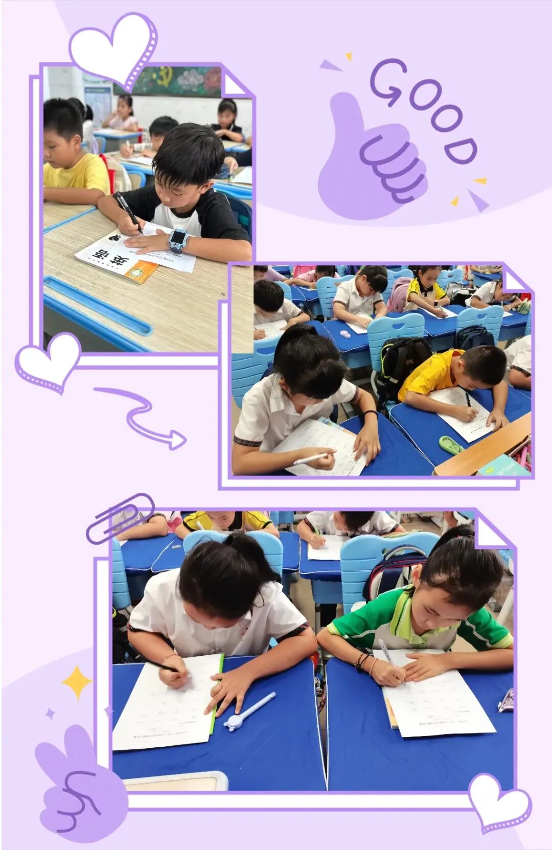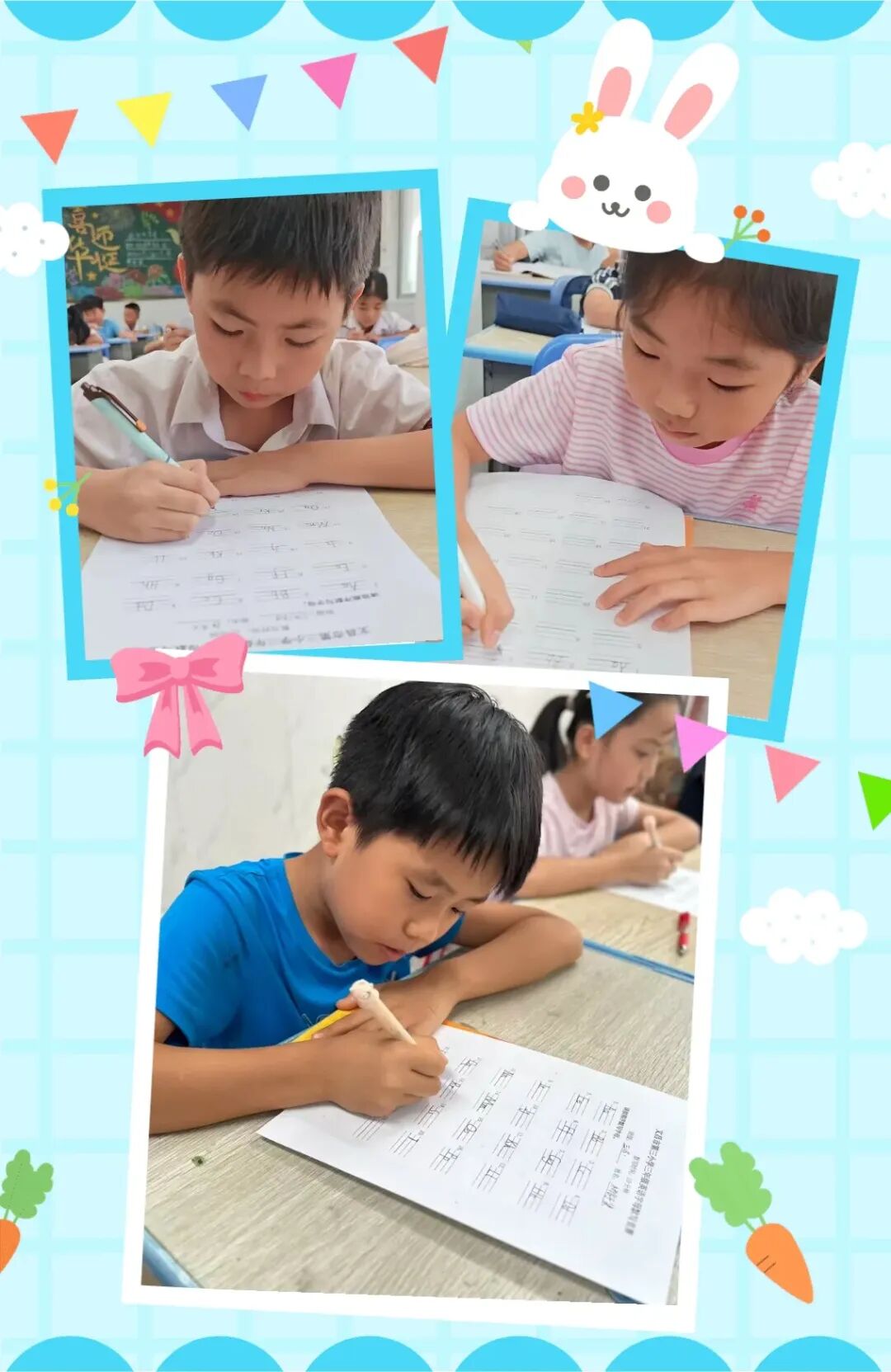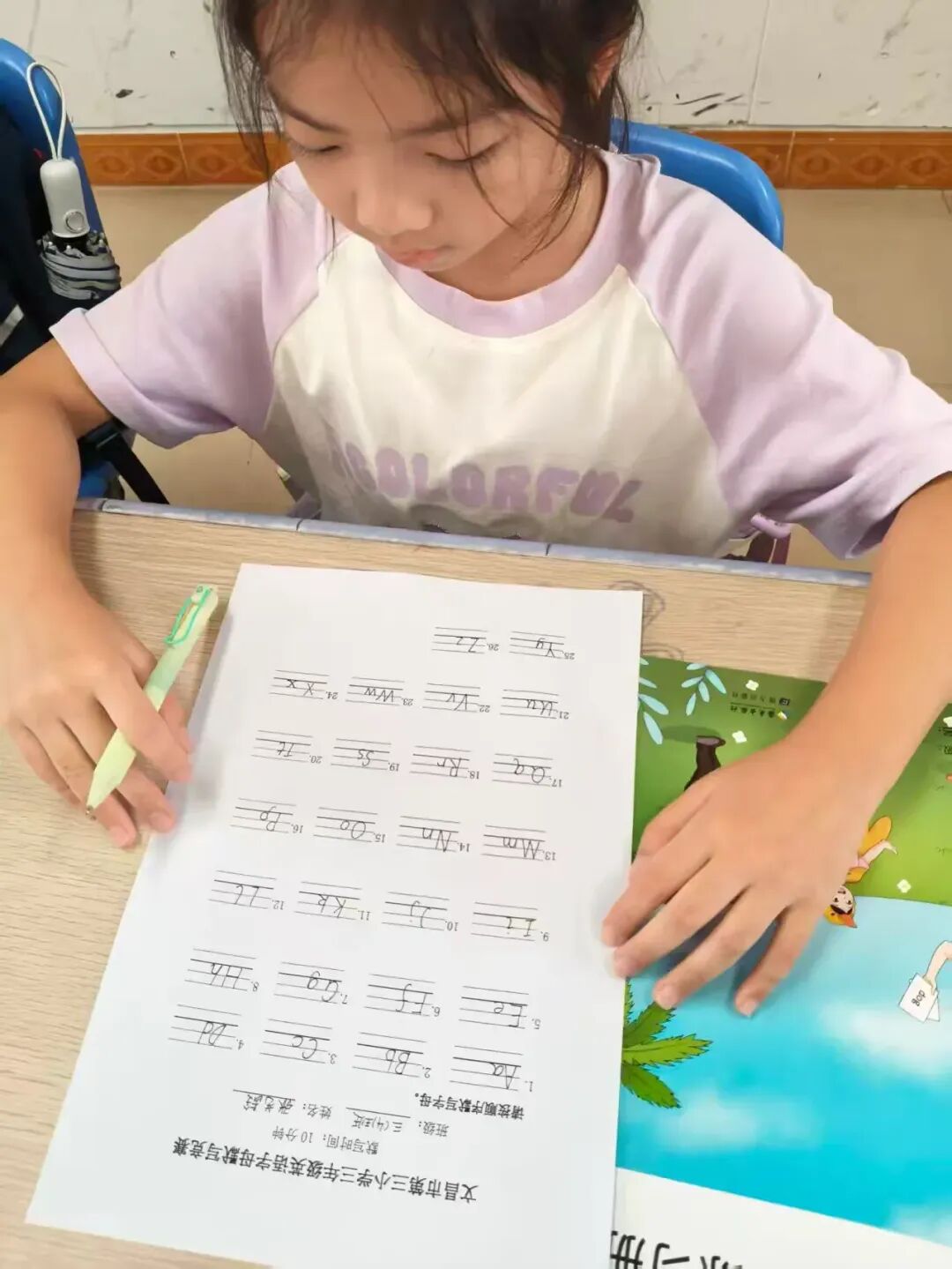 为夯实英语基础,规范书写习惯,英语组在开学第三周组织三年级字母书写比赛。教室里,学生们坐姿端正,专注地在纸上书写字母,展现出认真的学习态度。比赛中,孩子们握笔姿势标准,一笔一划书写工整,从字母的大小写到间距排列都一丝不苟。