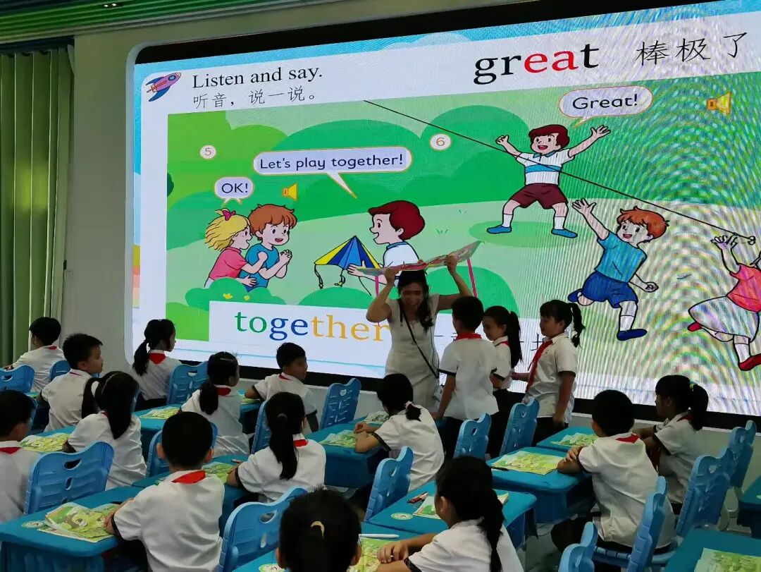 陈丽君老师带来的三年级第一单元教研课《Let's be friends》,以风筝为线索,围绕help、here you are、play together等关键词展开教学,生动呈现David、Mia与Ben三位小伙伴从相遇到成为朋友的故事。课堂上,学生通过情景互动理解词汇含义,在故事推进中掌握交际用语。