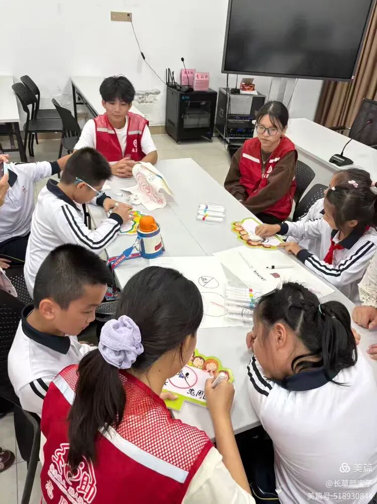 活动从破冰游戏开始,笑声迅速融化了陌生的隔阂。随后进入“妙笔生花”环节,孩子们围坐在桌前,专注地绘制安全标识板——“慢行”“禁止高空抛物”“垃圾分类”……色彩跃然板上,稚嫩笔触中藏着对家园最真挚的守护。他们手中的马克笔,不只是工具,更是表达参与权利的媒介。这一幕幕专注创作的场景,在多张图片中静静呈现。
