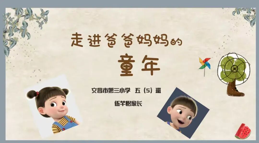 一阵阵纯真的欢笑从教室里传出,一双双好奇的眼睛闪烁着光芒。今天,文昌市第三小学五(5)班教室迎来了一位特别的嘉宾,也迎来了一场穿越时空的奇妙旅程——爸爸妈妈的童年,正生动地展现在孩子们面前。