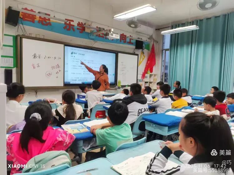 三(3)、三(8)、三(6)、三(7)、三(9)班集体讲解数学习题。三(1)、三(2)、三(4)、三(5)班集体完成习题,老师巡视全班,俯身个别指导学生,耐心讲解,订正错题。