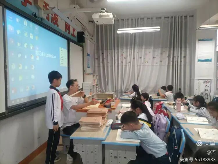 五(1)、五(3)、五(5)、五(6)、五(7)、五(8)班语文老师给学生讲解习题;五(2)、五(4)班英语先给学生做练习,然后有针对性讲解。