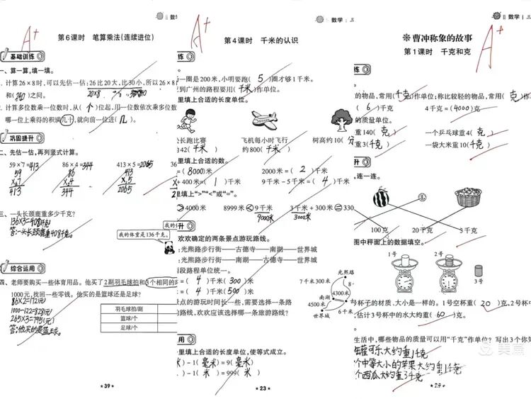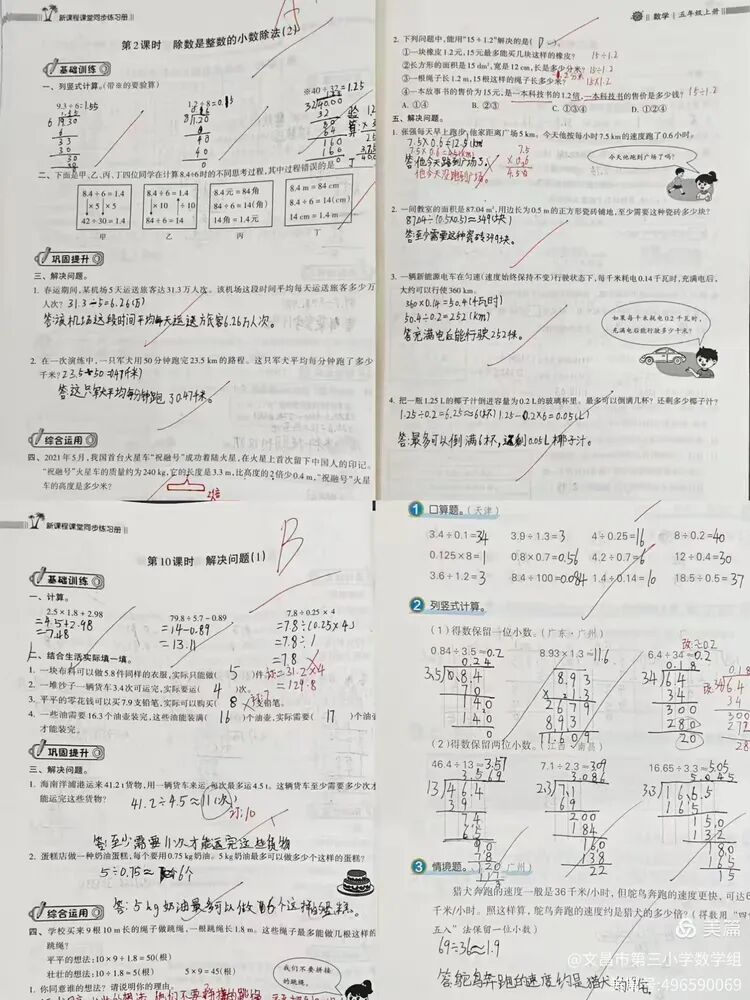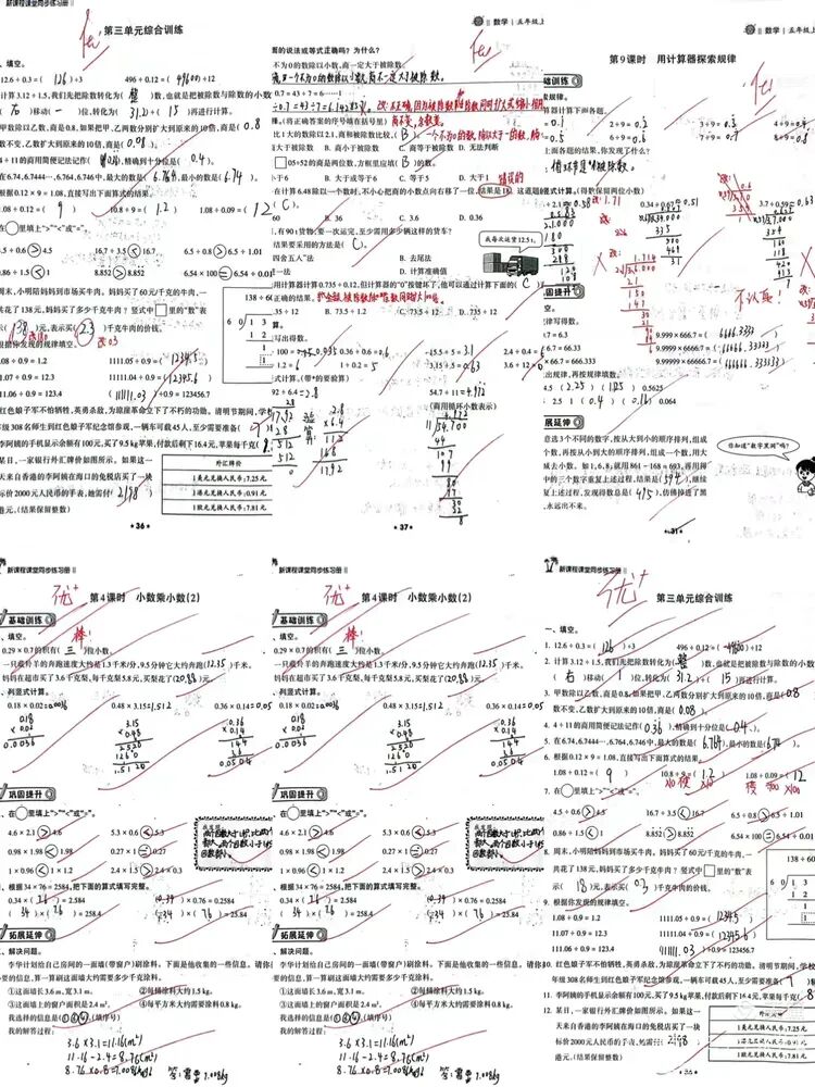 三四年级的同学们已然展现出良好的学习素养。计算题步骤完整、准确率高,应用题审题细致、逻辑连贯,就连拓展题也能看到独特的解题思路。部分同学还会用不同颜色的笔标注重点、订正错误,整理错题本时条理分明。作业中不仅有对知识点的熟练运用,更有独立思考的痕迹,彰显着数学思维的稳步提升。