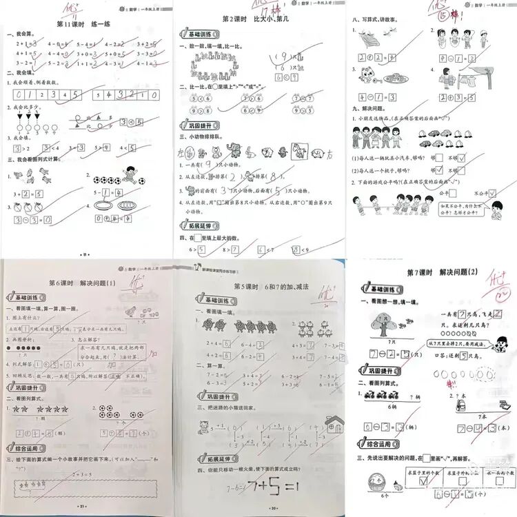 一二年级的小朋友们用稚嫩的笔触书写着对数学的好奇。整洁的卷面、规范的数字书写、清晰的答题步骤,尽显童真与认真。从10以内加减法到百数表填写,从看图列式到简单应用题,孩子们在一笔一画中夯实基础,在一题一解中培养习惯。那些被圈出的红勾、老师暖心的批注,既是肯定也是鼓励,陪伴孩子们在数学世界迈出坚实的第一步。
