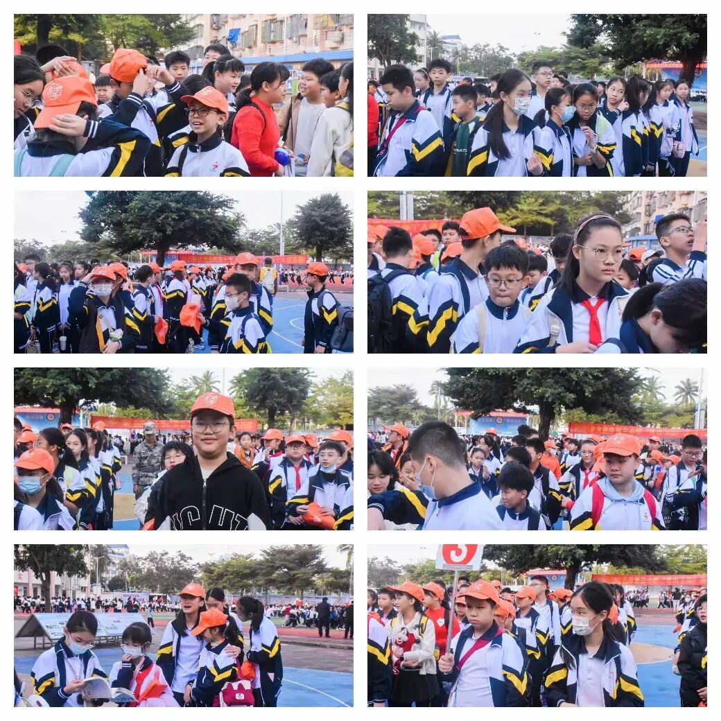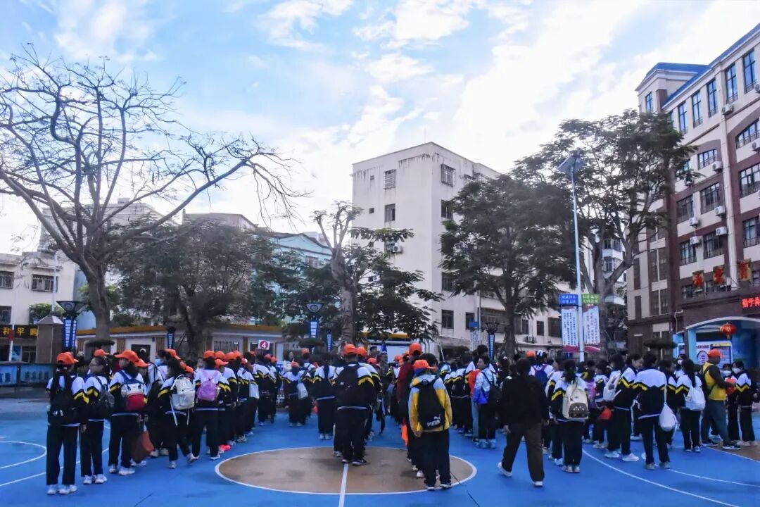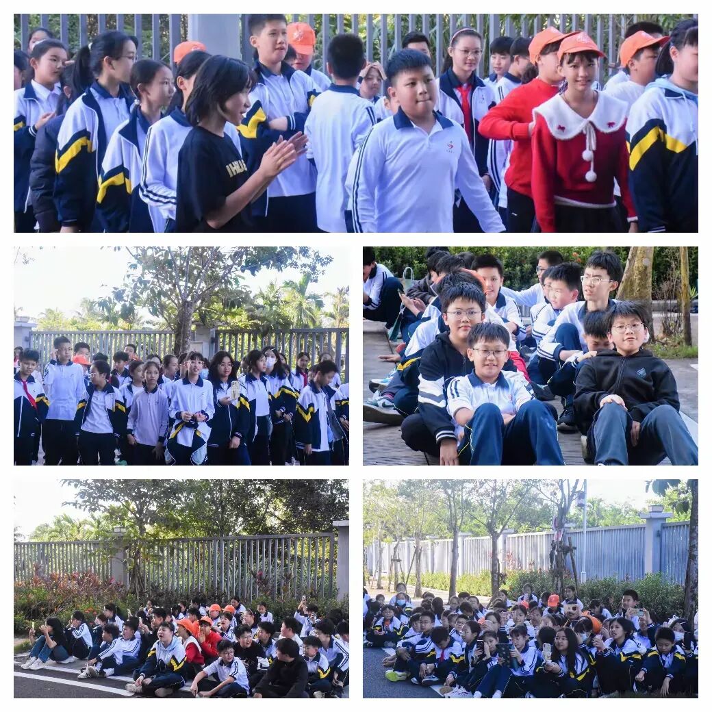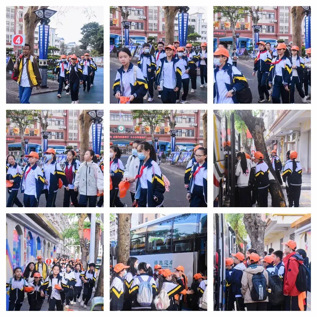 今日阳光明媚,正是外出的好时节!同学们满怀憧憬,在操场上整齐列队。鲜艳的班旗迎风招展,一张张兴奋的笑脸洋溢着对未知旅程的期待。