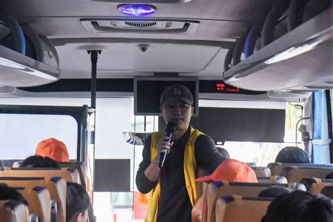 今日的研学之旅,始于手中那本小小的研学手册。一上车,研学导师便将手册和矿泉水等物料发放至同学们手中。指尖翻动书页,耳畔是导师的讲解,同学们心却乘着风,飞向了即将抵达的研学目的地。