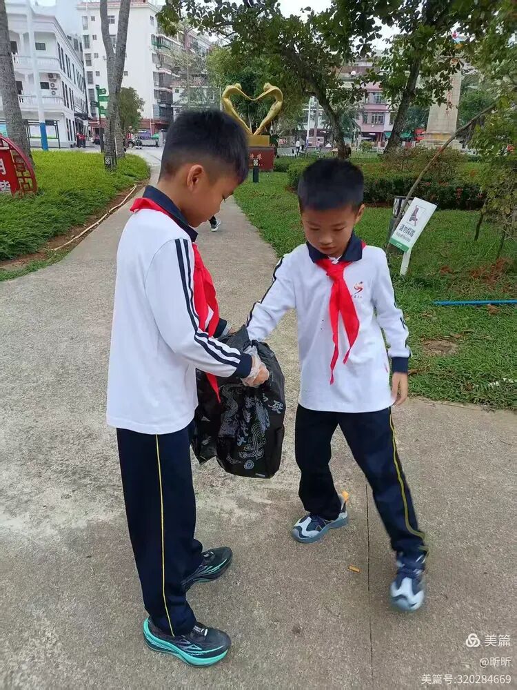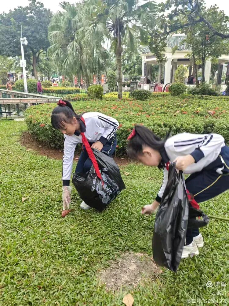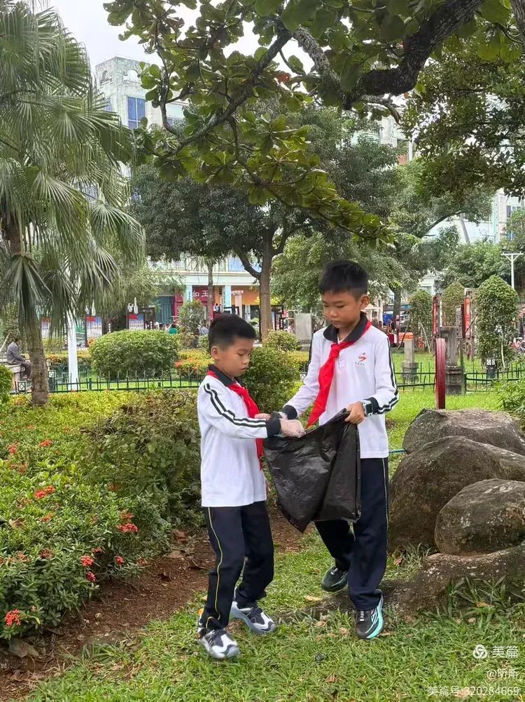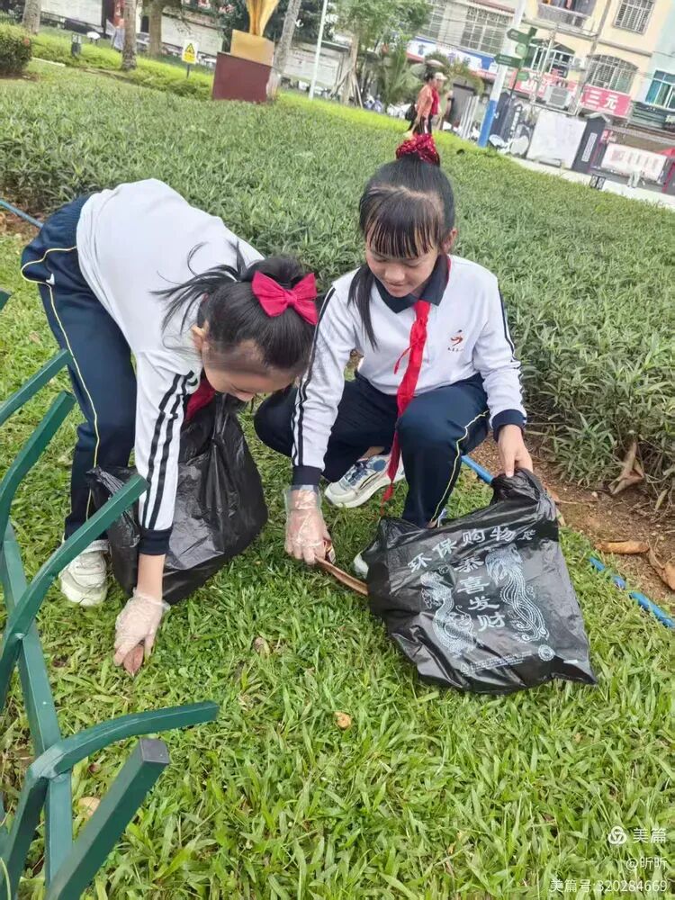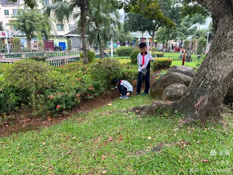 文昌市第三小学三年级(4)班的同学们在周末开展公园志愿者活动,通过捡拾垃圾等行动践行环保,既美化了环境,又收获了劳动的快乐与成长。