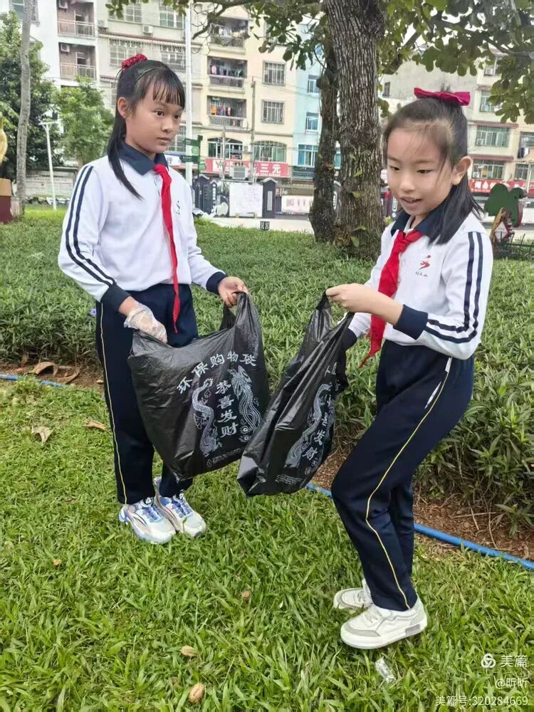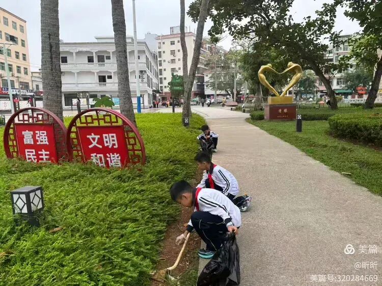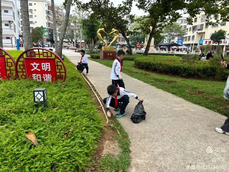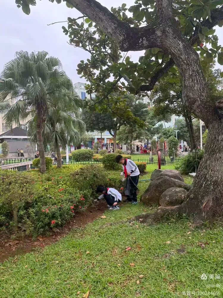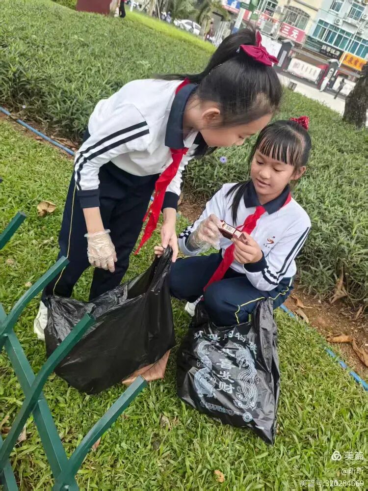 文昌市第三小学三年级(4)班的同学们在周末开展公园志愿者活动,通过捡拾垃圾等行动践行环保,既美化了环境,又收获了劳动的快乐与成长。
