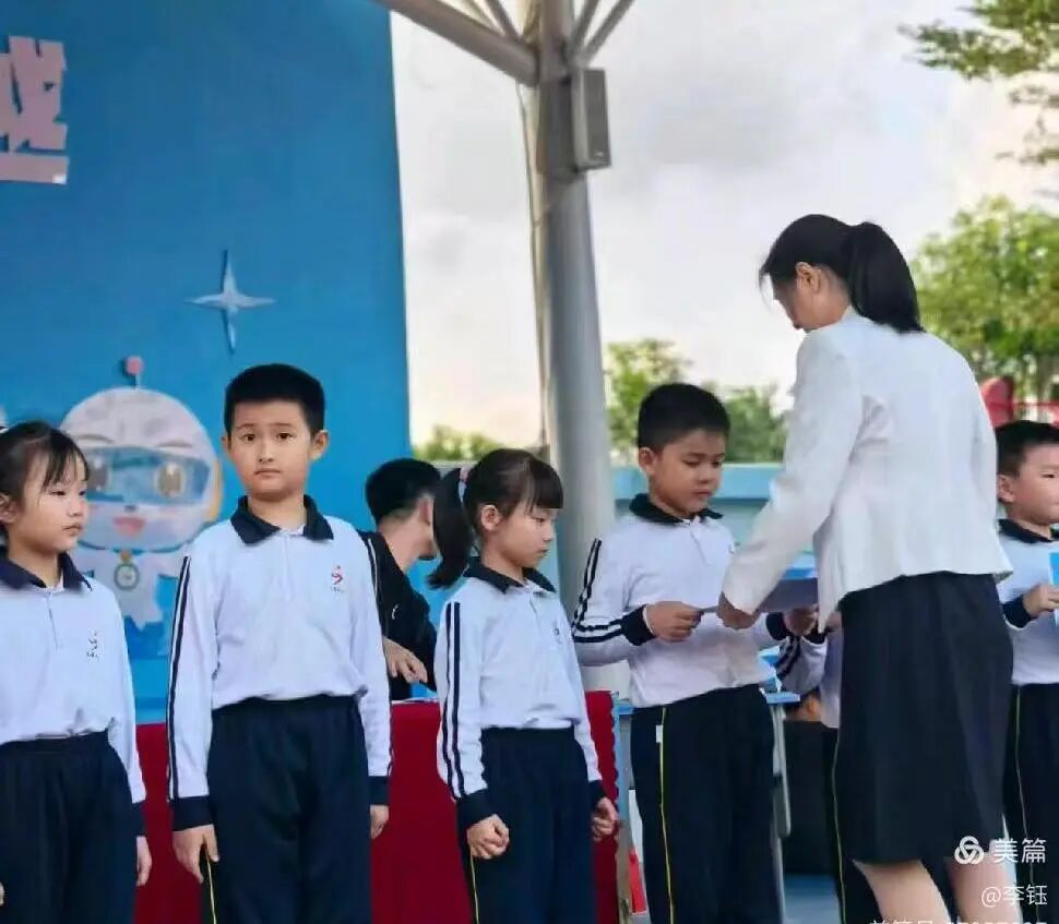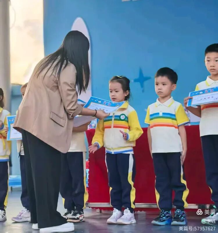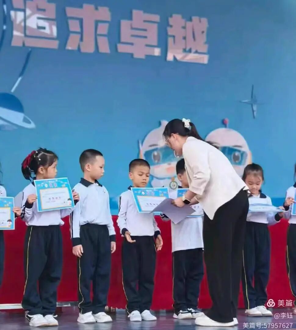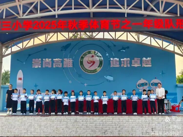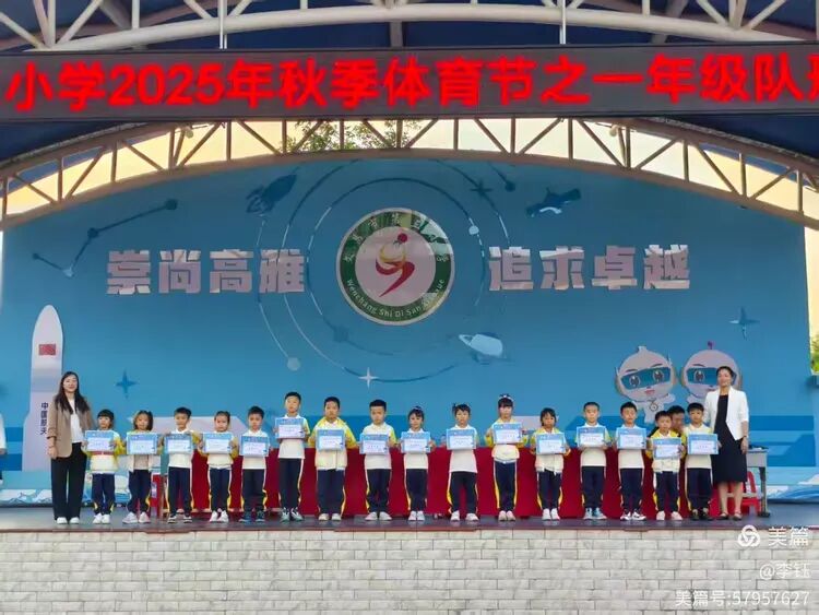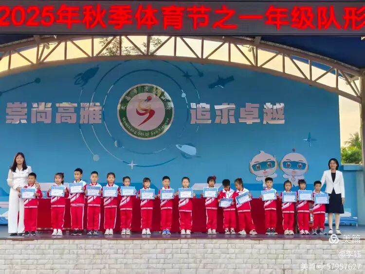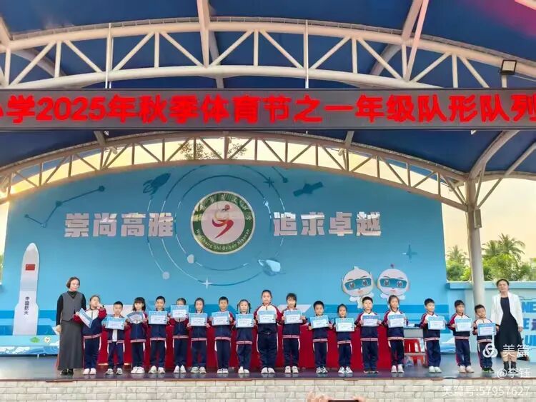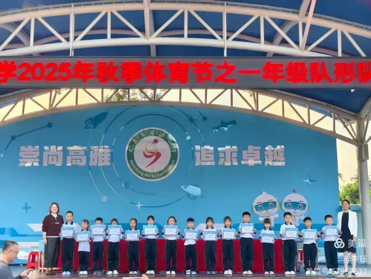 展示尾声,激动人心的颁奖环节在激昂音乐中拉开序幕。班主任与家委代表共同为优秀新生颁发奖状,同时也揭晓了队形队列奖的获奖班级。一张张奖状,是对孩子们入学以来努力的肯定,更是对他们未来成长的期许,孩子们接过荣誉的瞬间,脸上洋溢着满满的自豪。