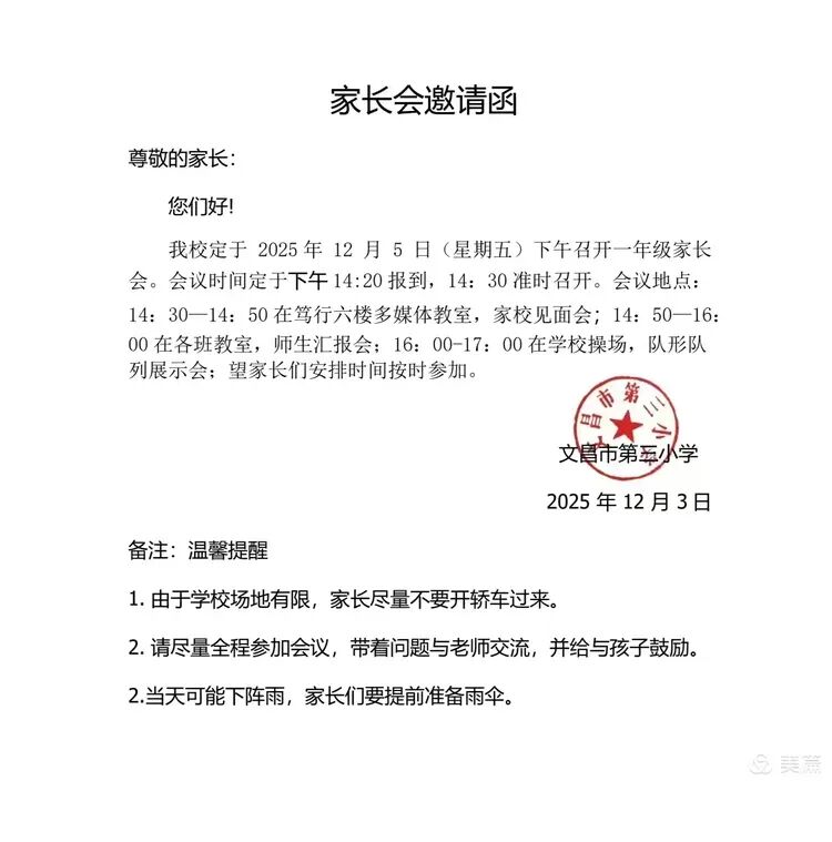 家长会邀请函
