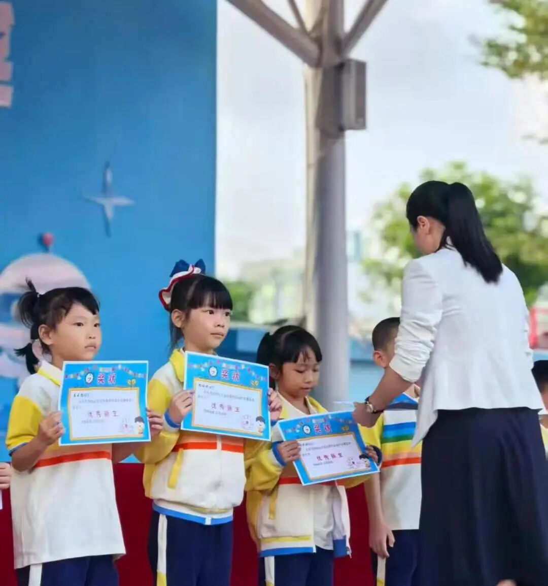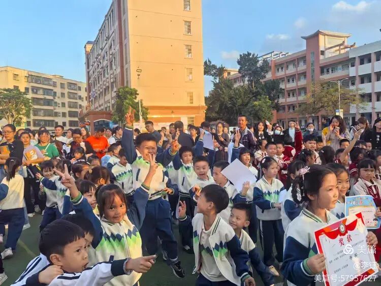 “二等奖……一等奖……!”当主持人的声音落下,操场瞬间被孩子们的欢呼声点燃。小家伙们像一群挣脱了束缚的小雏鹰,有的蹦跳着扬起双臂,有的紧紧相拥,额头抵着额头,眼里闪着亮晶晶的光,还有的拉着同伴的手原地转圈,平日里排练时的小磕绊、小疲惫,此刻都化作了满脸的笑意,连脸蛋上的汗珠都闪着喜悦的光芒。