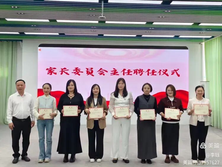 王平校长发表讲话,围绕学校办学理念、新生适应教育及家校协同要点娓娓道来,为家长们提供了科学的育儿指引,话语间满是对孩子们的殷切期许。紧接着,王平校长亲自为家委会主任颁发聘任证书,并合影留念。红色的证书不仅是一份荣誉,更是家校携手共育的责任与承诺。