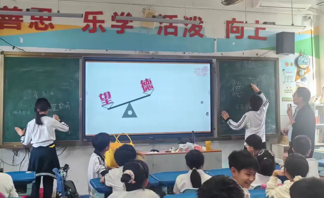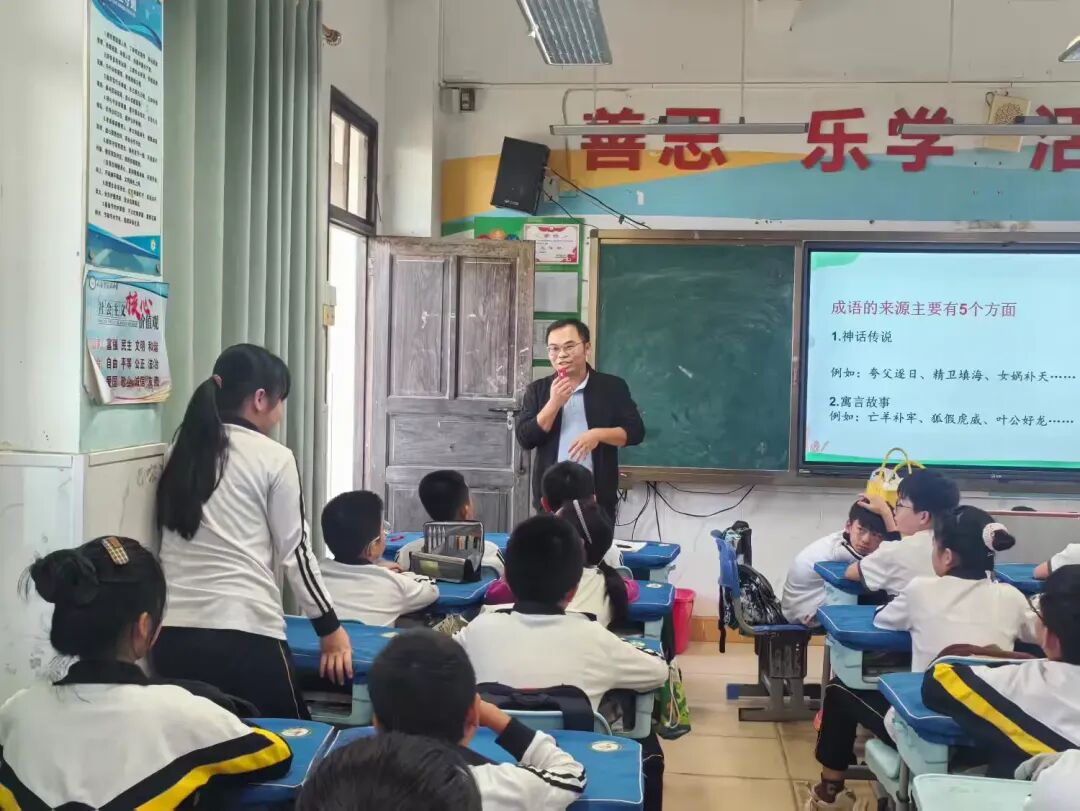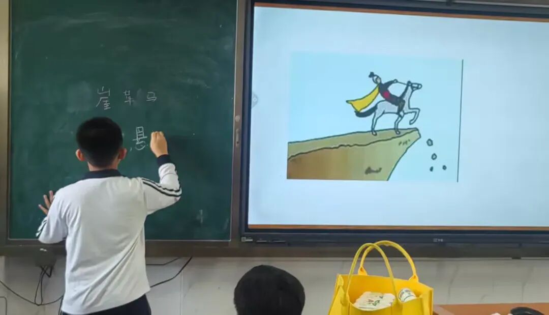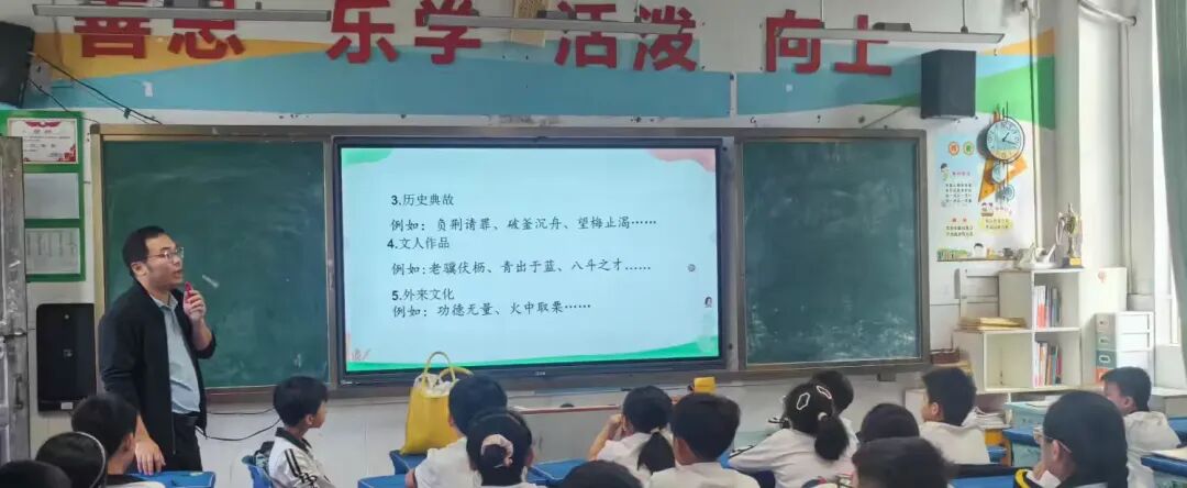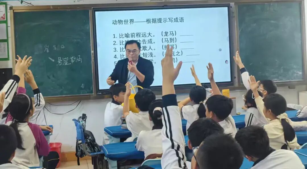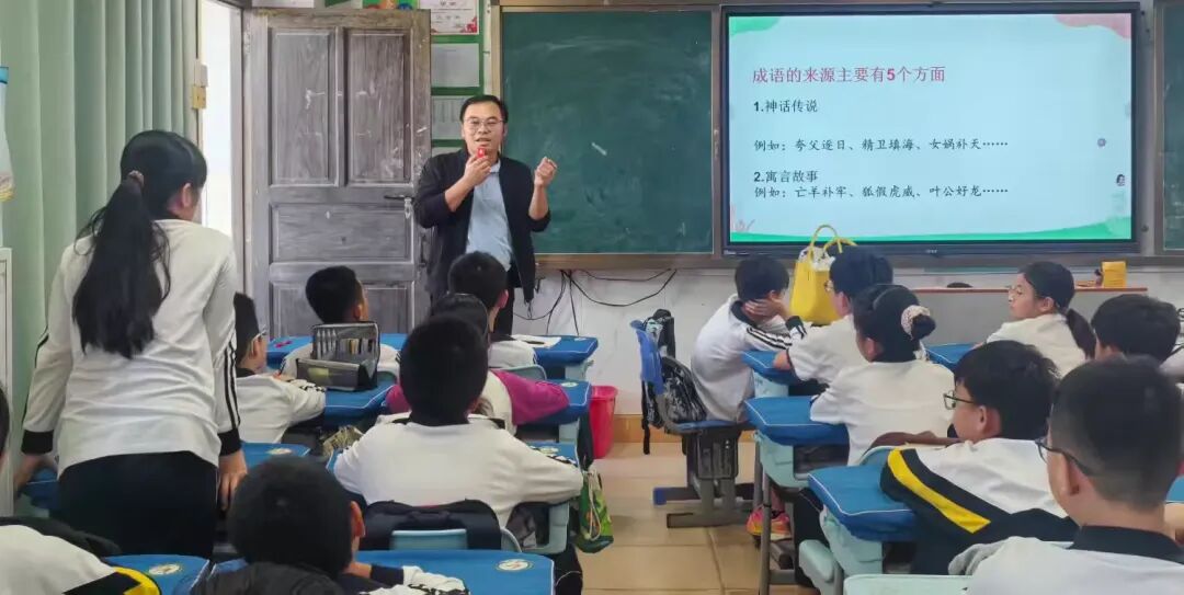 师生互动频繁,课堂气氛轻松热烈。通过问答、小组讨论等形式,学生们积极参与,充分展现了对成语学习的热情,整个教室充满了浓厚的学习氛围。