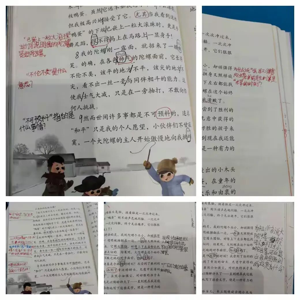 2.细化批注指导,落实阅读方法:在学生批注前,给出具体的批注角度示例,如“写感受——读到这里我感受到作者的兴奋”“写疑问——为什么作者拿到陀螺会又高兴又失落”“写得好——这句话用了比喻,把陀螺比作小兵”,让学生有章可循;批注后,选取典型案例进行全班点评,强化批注方法的运用。