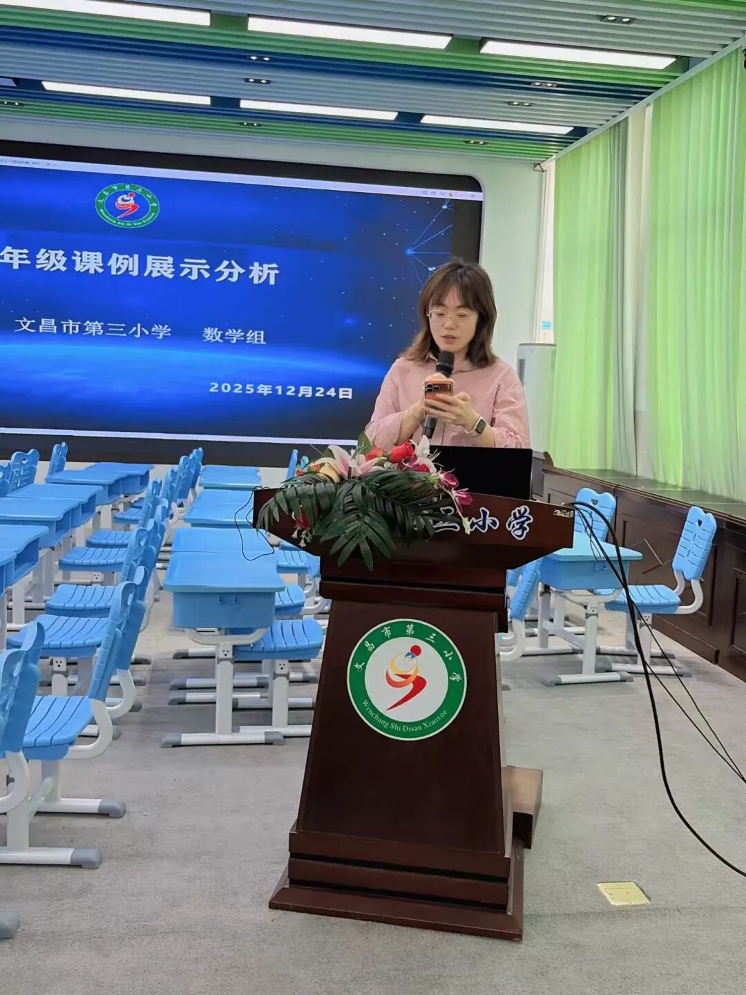 活动伊始,主持人简明介绍了本次教学活动的主题与流程,拉开了文昌市第三小学二年级数学教学研讨的序幕。现场氛围专注而有序,为后续环节奠定了良好基础。