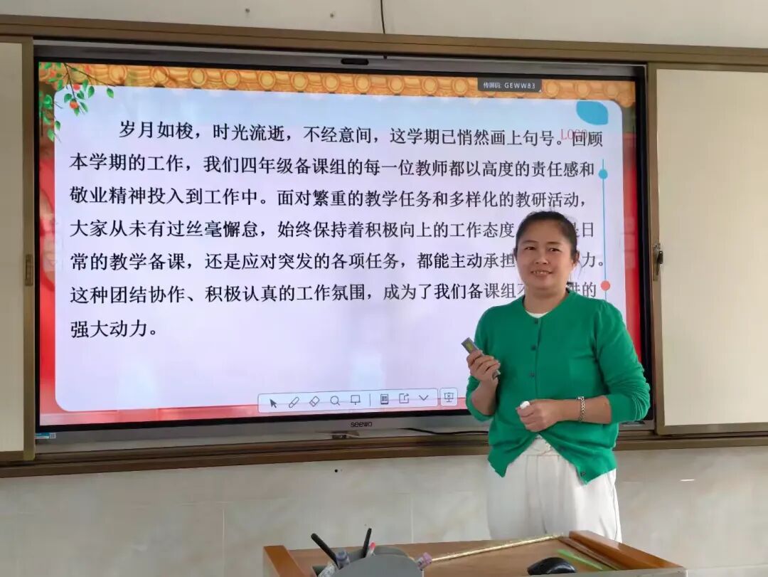 符丹汝大组长在小结中肯定本学期各年级组扎实开展各项活动的有效,同时也鼓励大家在教学中多做“精准诊断”,认真对待每一次教研活动,让教研真正服务于课堂、惠及每一位学生,在深耕与创新中,不断提升自身的教学能力,共同书写文昌三小语文教育的新篇章。