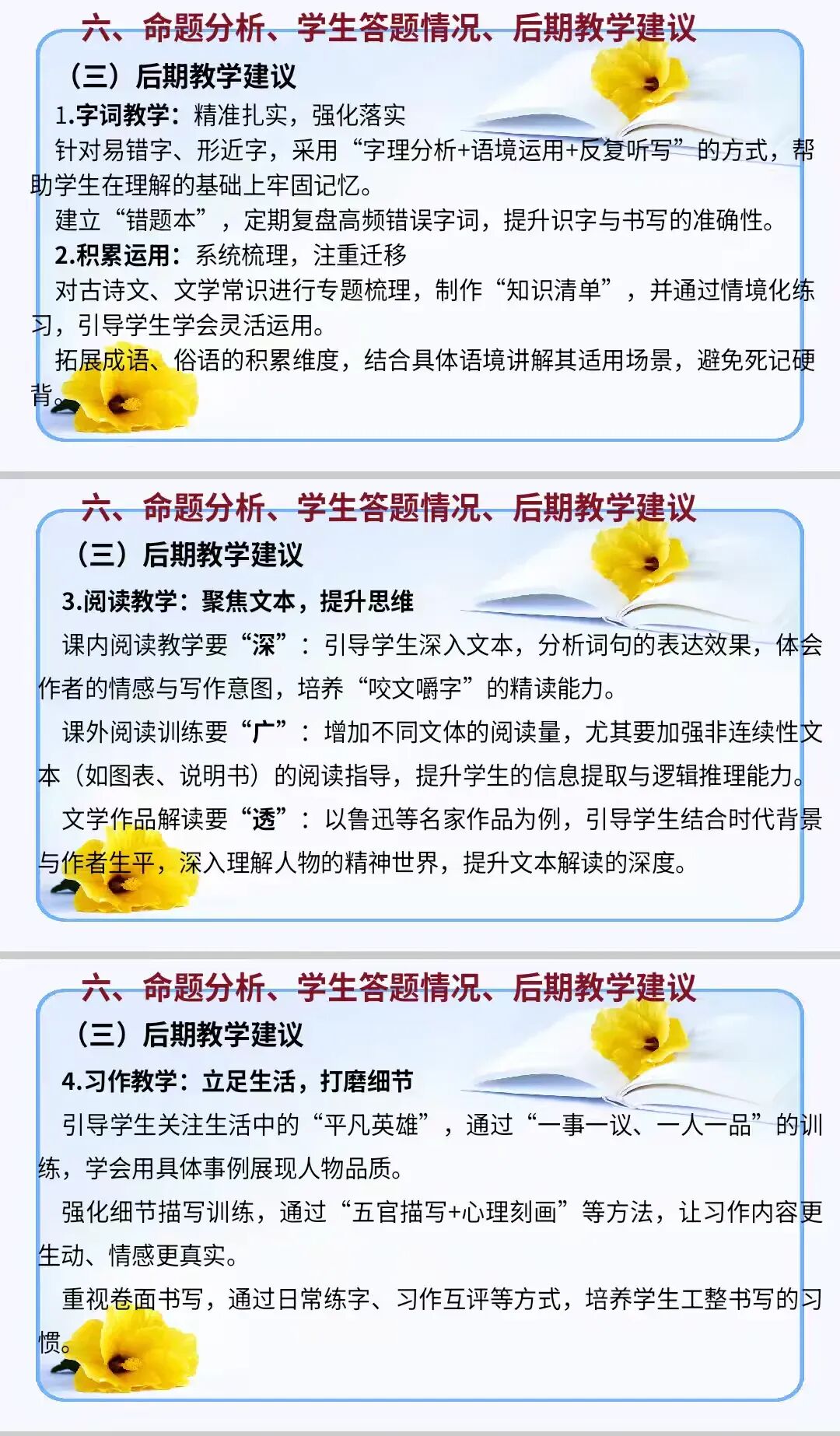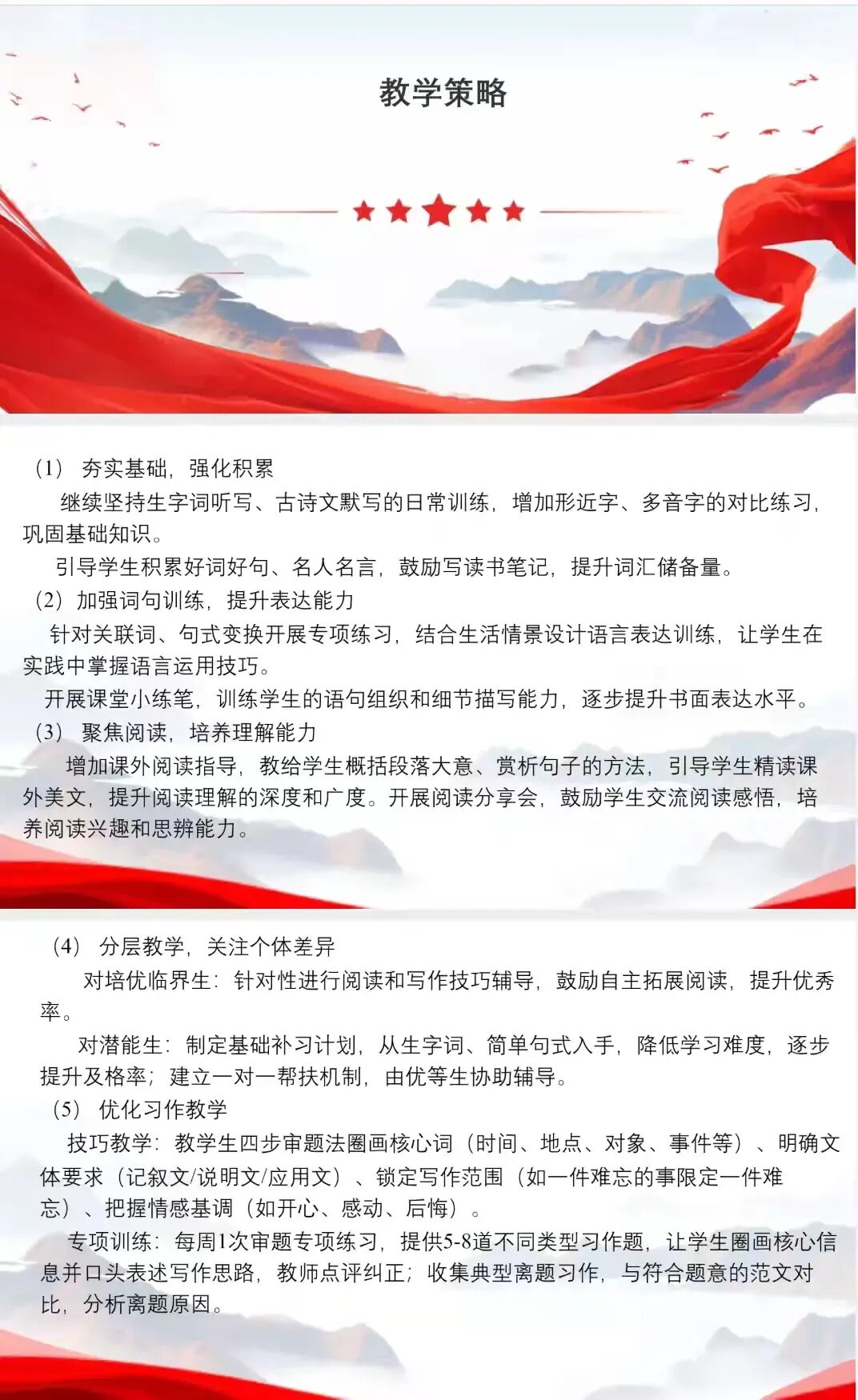 4.以数据为支撑开展全面质量分析,复盘教学得失、明确改进路径,形成“教研——教学——检测——复盘”的闭环管理,推动学科教学质量稳步提升。