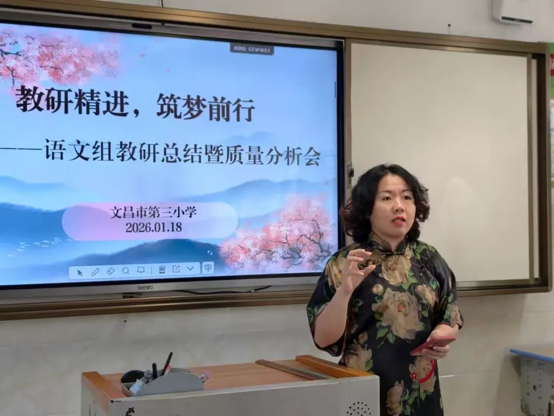 为全面总结本学期语文教学工作,精准分析教学质量,明确后续教学方向,1月18日,文昌市第三小学语文组召开“教研精进,筑梦前行”主题教研总结暨质量分析会。全体语文教师齐聚一堂,围绕教学成效复盘总结、聚焦现存问题深刻剖析、锚定发展目标谋划展望。