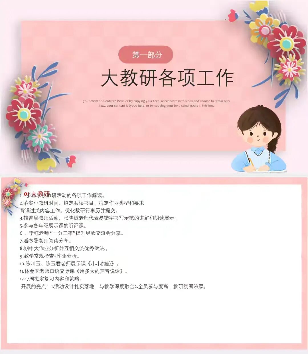 1.研思并举,以大教研定方向、小教研破难题,让教学之路步履坚实。