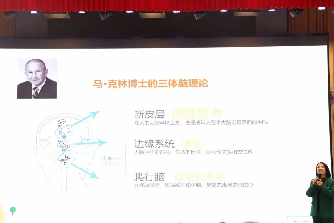 在“心”的培育板块,吴若瑜讲师结合马・克林博士的三体脑理论,生动解析了情绪对学习的深远影响。大脑的边缘系统作为“情感脑”,直接决定着学习状态——当孩子处于高兴、愉悦、放松的积极情绪中,负责理性思考的新皮层才能高效运转,实现知识的吸收与转化;而批评、说教、惩罚等不当教育方式,会让孩子陷入紧张、焦虑的负面情绪,甚至触发“爬行脑”的安全预警,完全阻断学习通路。
