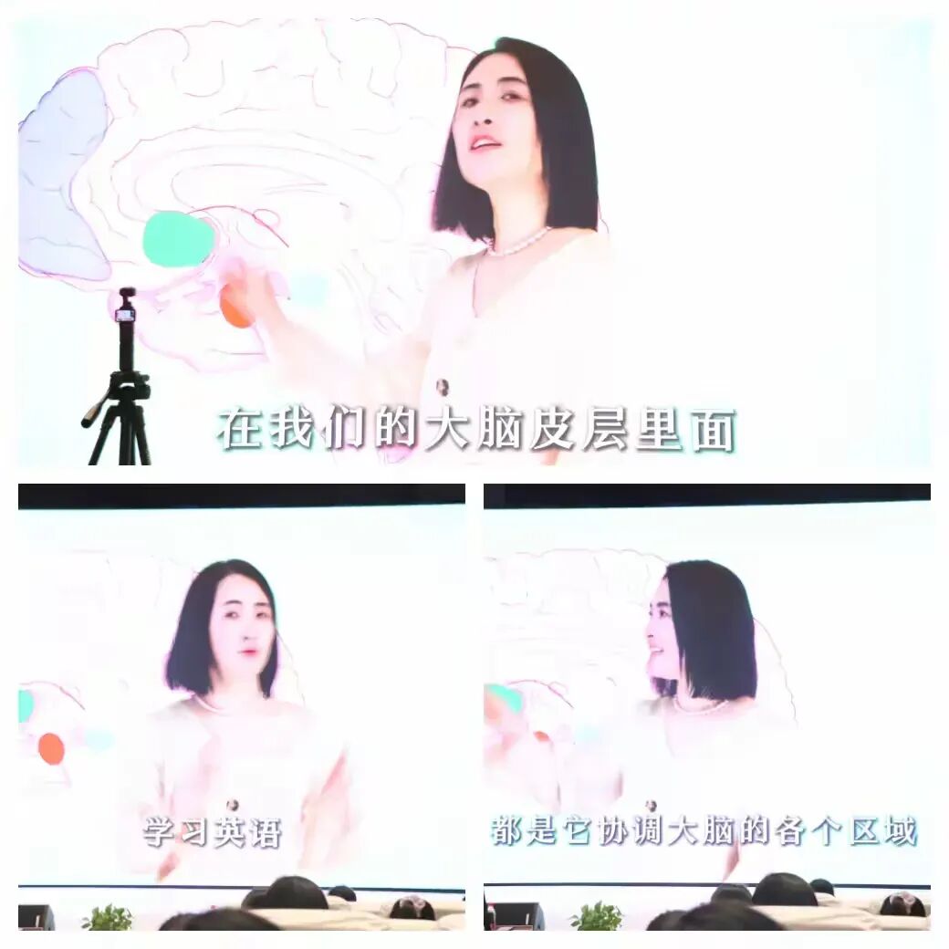 在“育心为先”的板块中,吴若瑜讲师借助大脑皮层示意图,生动拆解了情绪与学习的神经关联:她指着大屏上的大脑分区,结合 “学习英语”等具体场景,讲解大脑各区域的协同机制,让抽象的 “三体脑理论”变得直观易懂。柔和的米色着装搭配珍珠项链,既显亲和又不失专业,让在场教师清晰理解了“情绪影响学习效率”的科学逻辑。