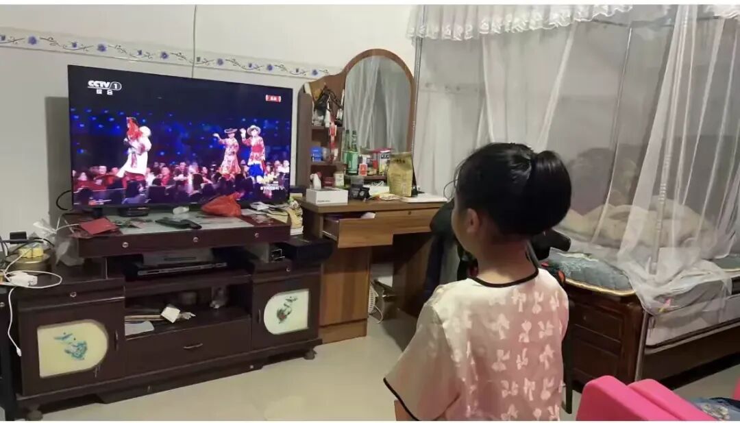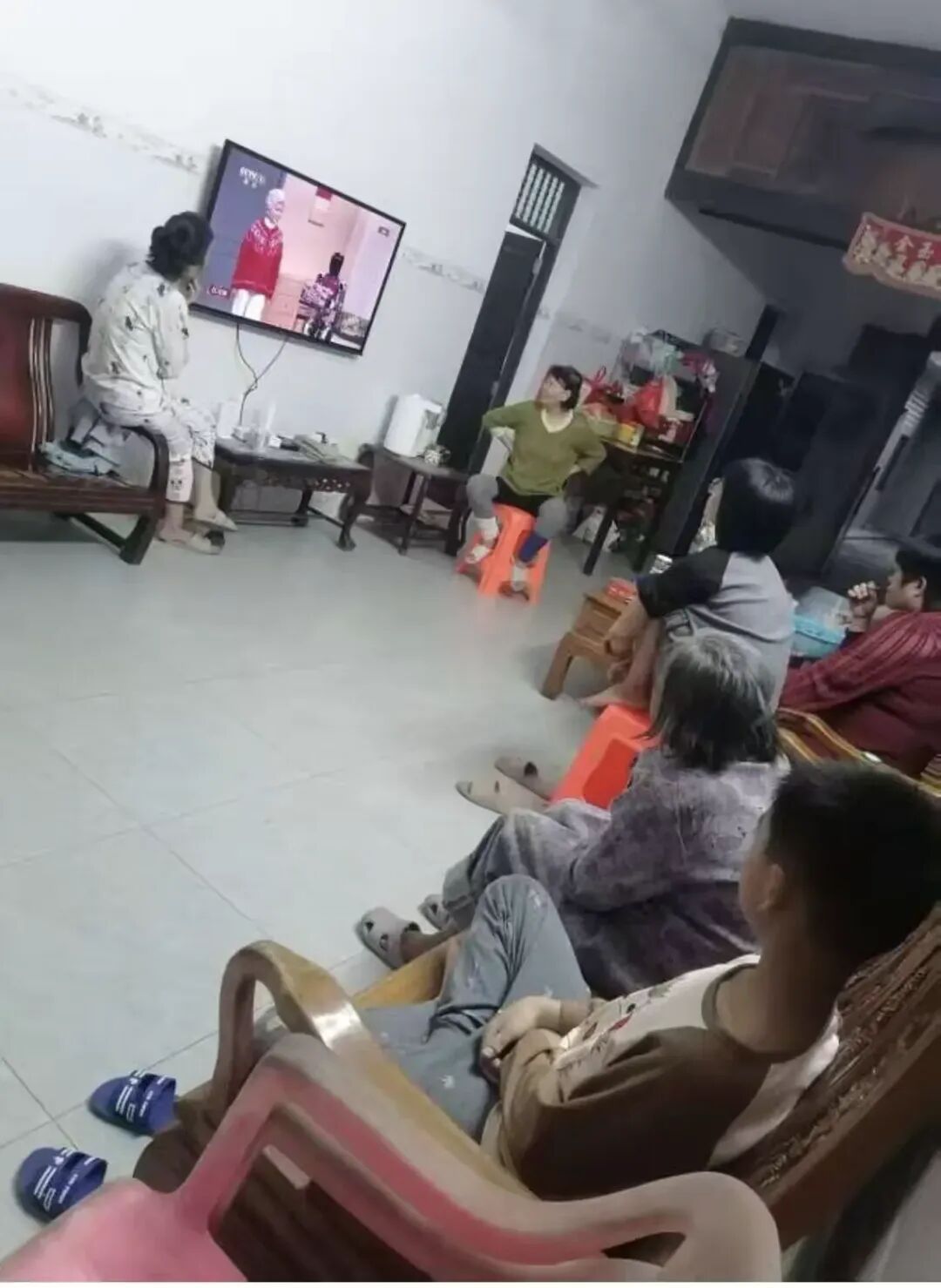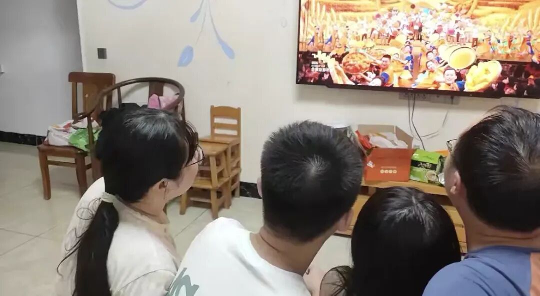 同学们和家人围坐一起,观看春节联欢晚会,在欢声笑语中感受团圆的幸福。