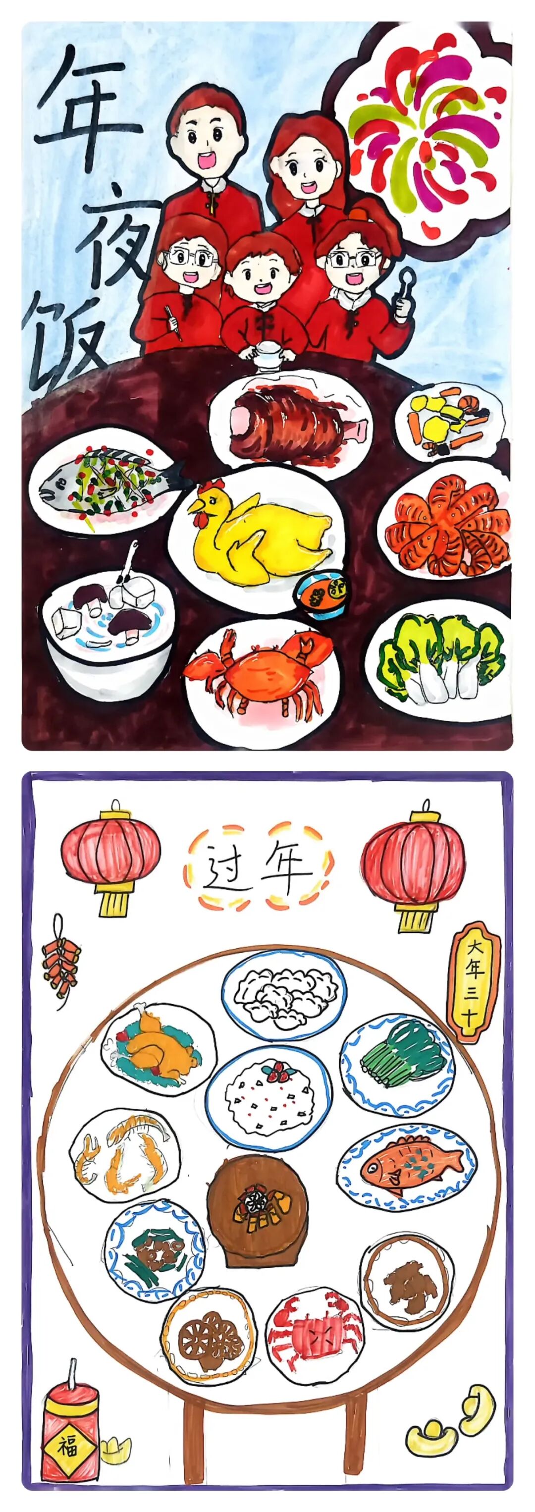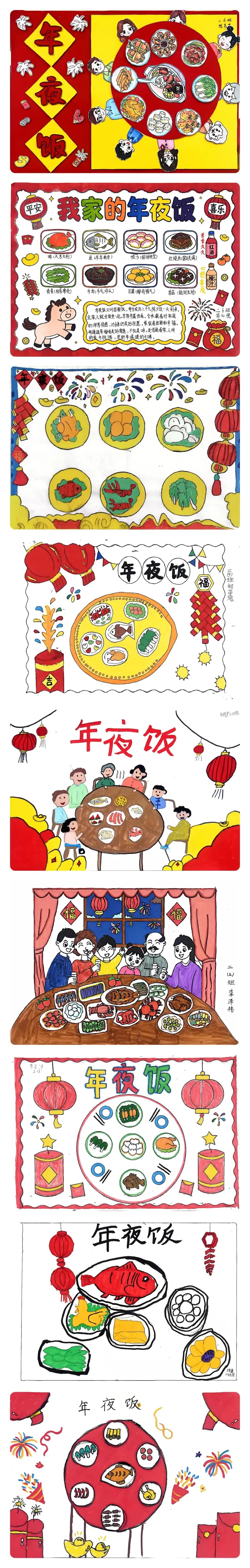 人间烟火气,最抚凡人心。年夜饭是新春最温暖的仪式,同学们用画笔描绘自家温馨的年夜饭场景:热气腾腾的饺子、丰盛美味的佳肴、围坐团圆的家人,一笔一画皆是对家的眷恋,一色一彩都满含新春的温情。一幅幅作品不仅定格了团圆美好,更让同学们感受传统年味,体会亲情温暖,在艺术创作中传承家文化。